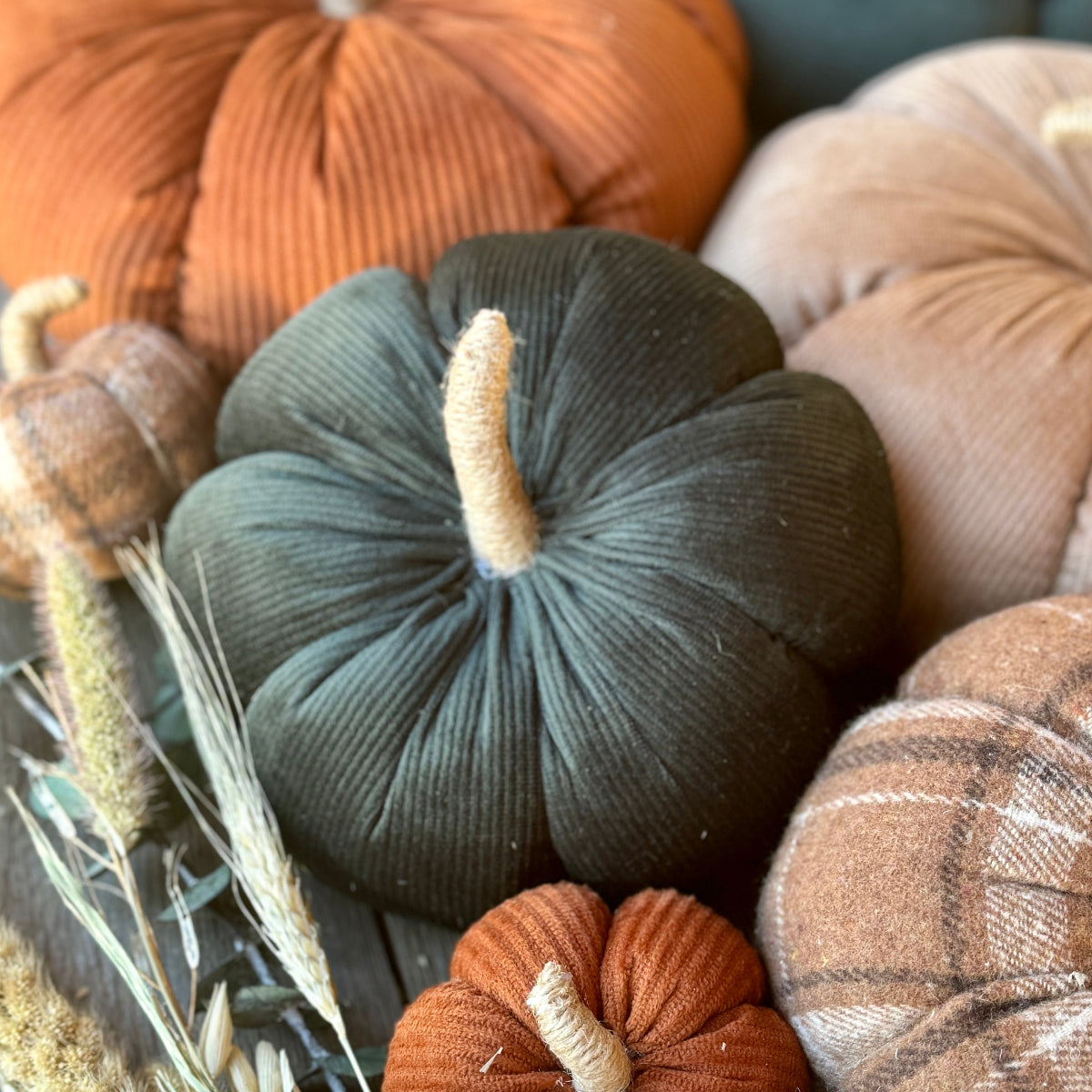 Hunter Corduroy Pumpkin with Jute Wrapped Stem