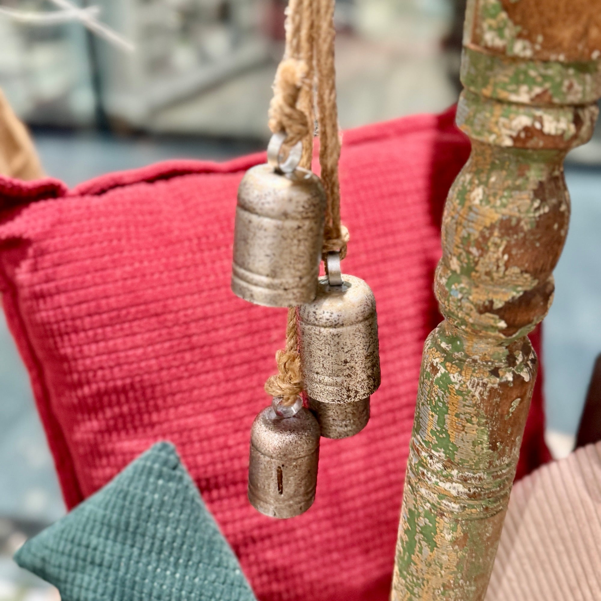 Set of 5 Silver Bells on Jute