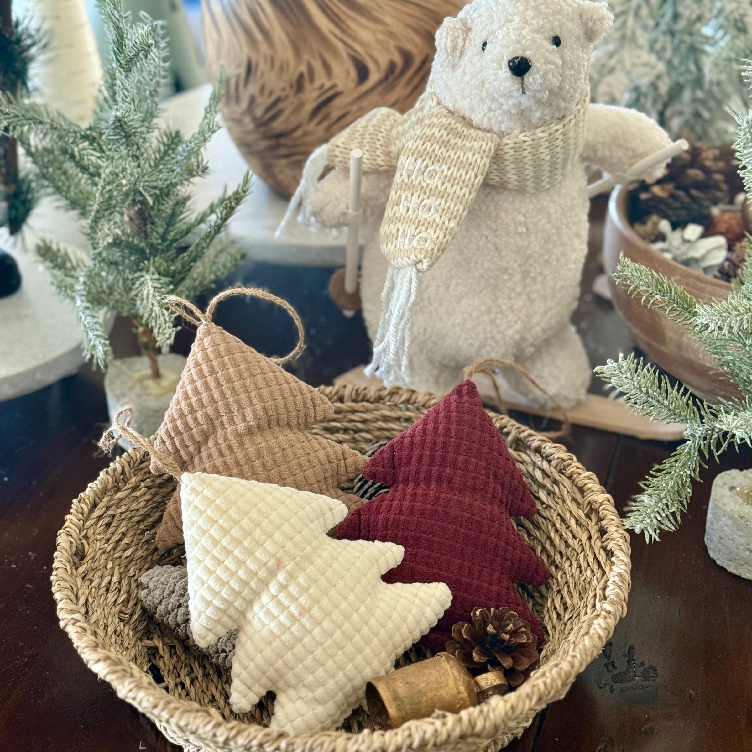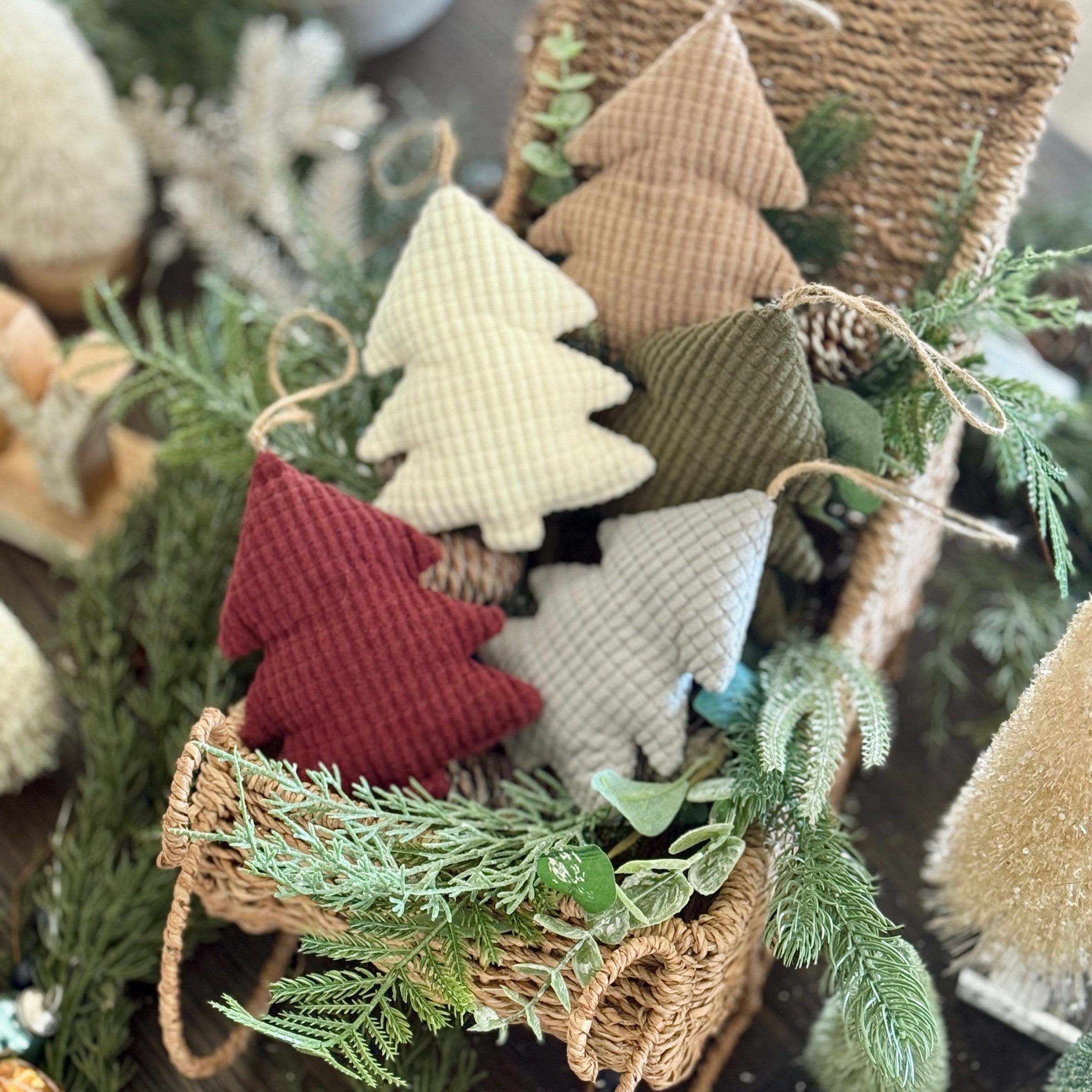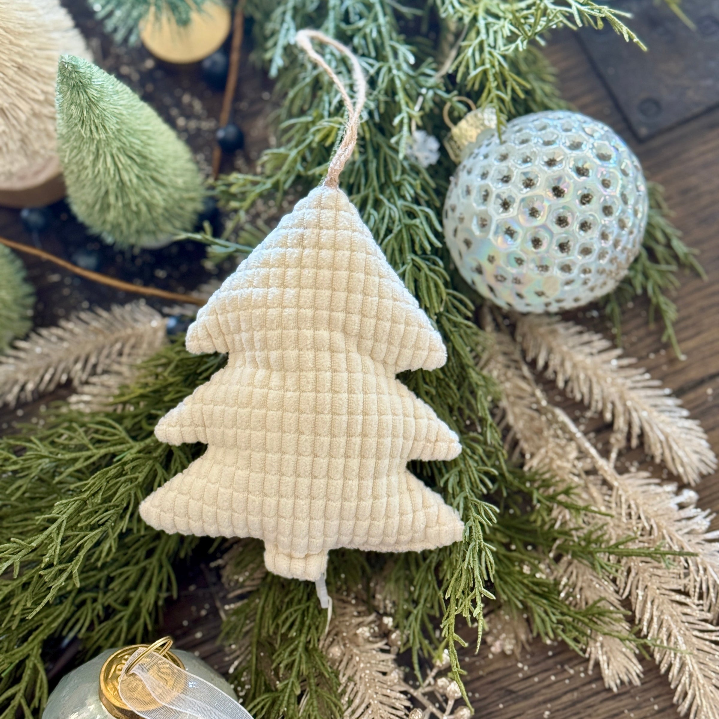 Chiffon Cross Cut Corduroy Tree Ornament with Jute to Hang