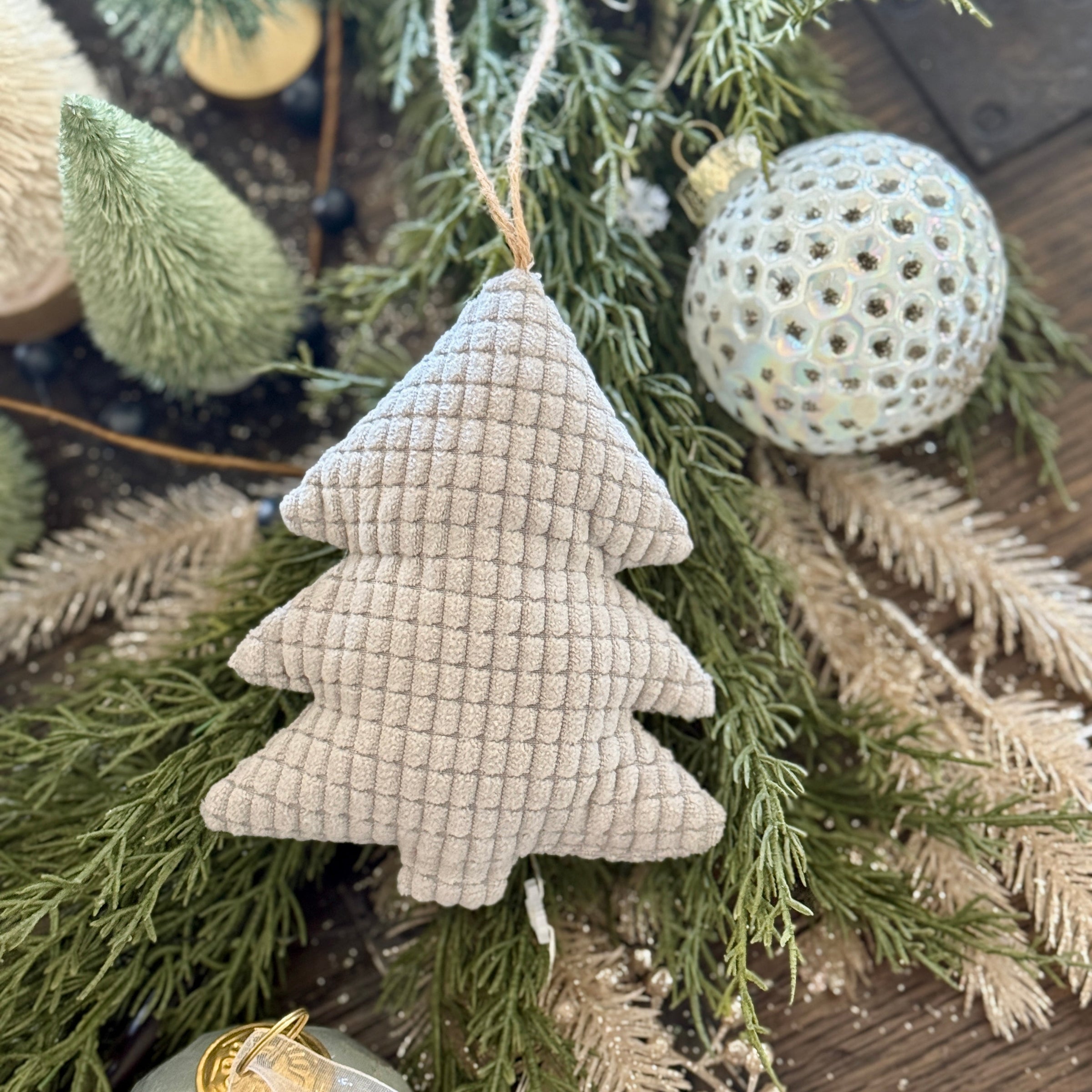 Minty Cross Cut Corduroy Tree Ornament with Jute to Hang