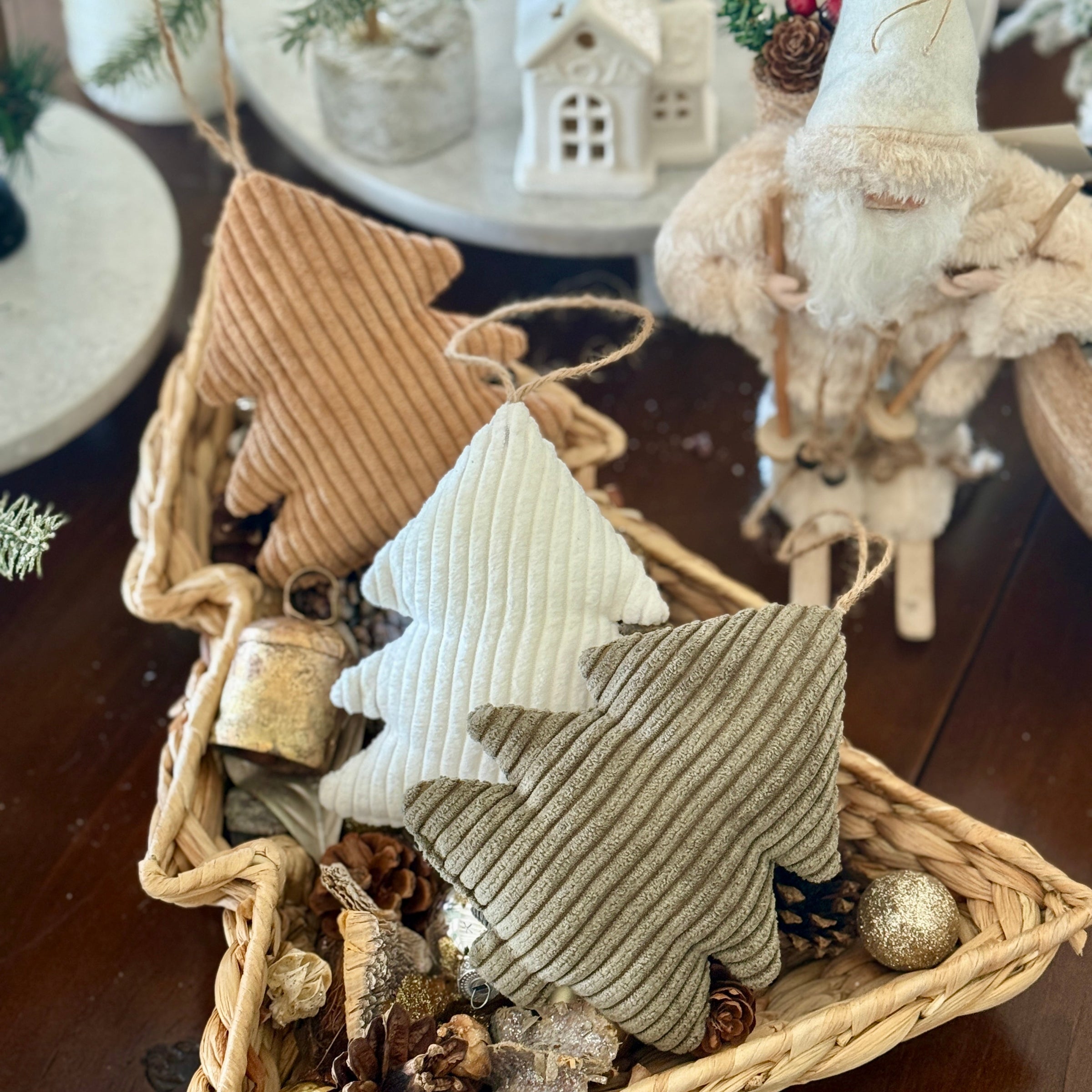 Evergreen Wide Corduroy Tree Ornament with Jute to Hang