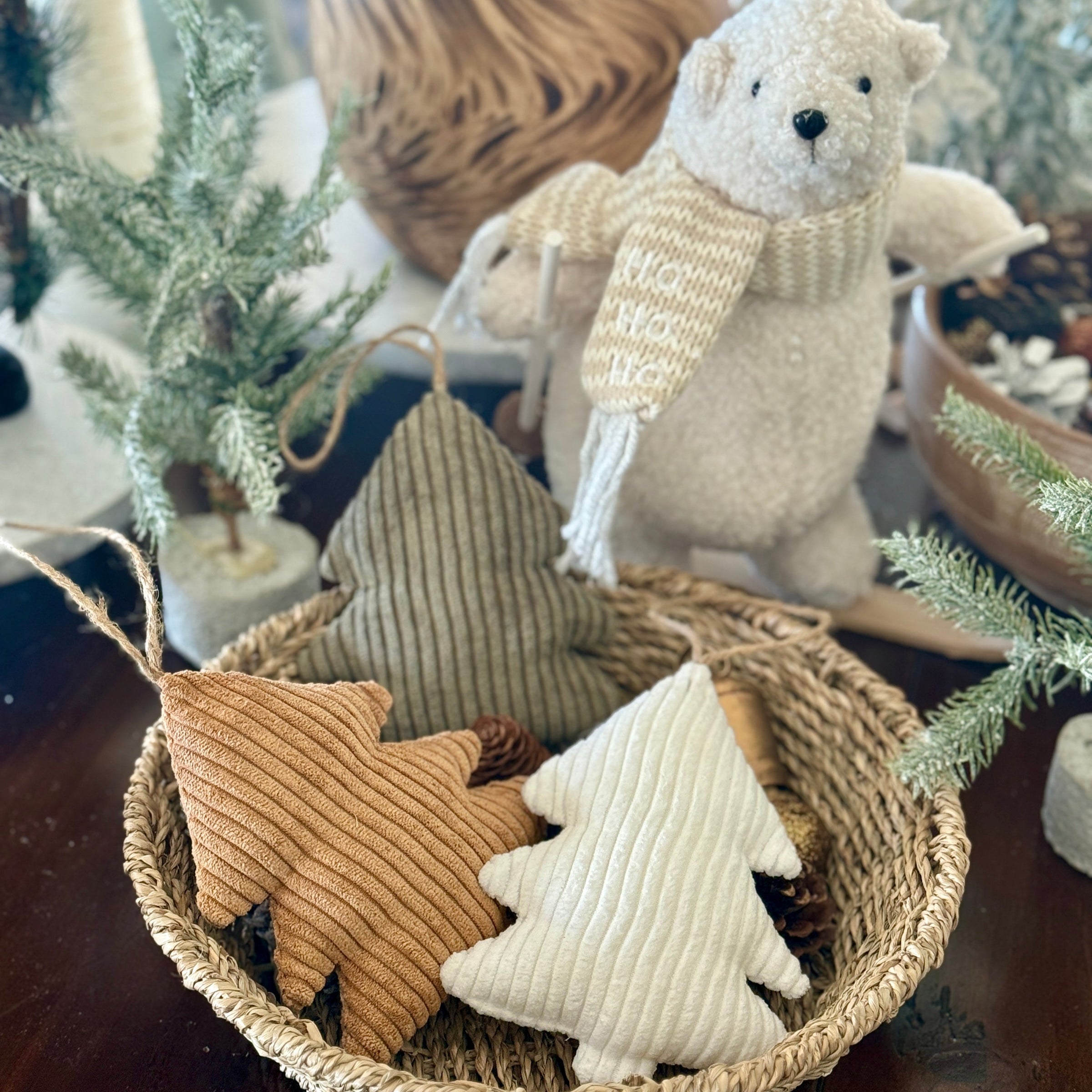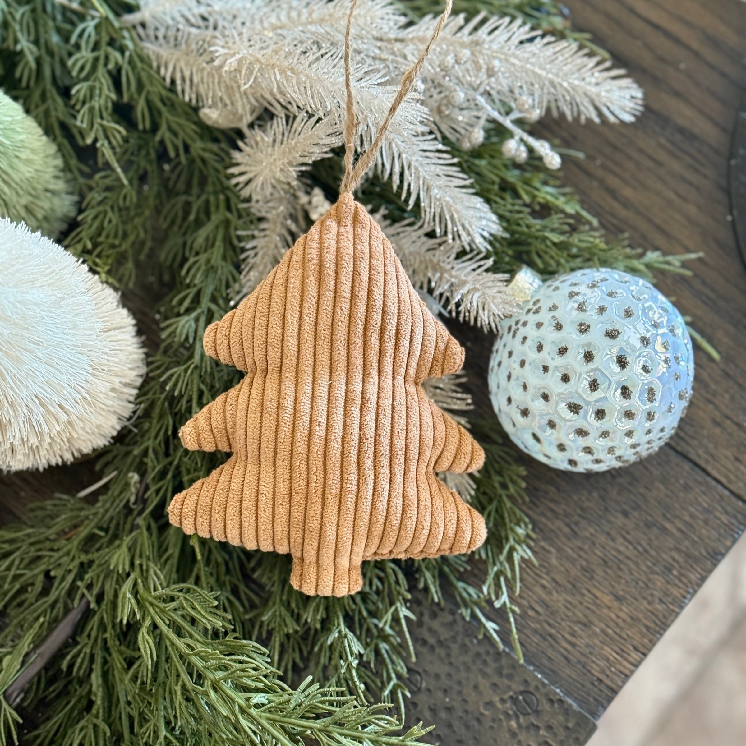 Camel Wide Corduroy Tree Ornament with Jute to Hang
