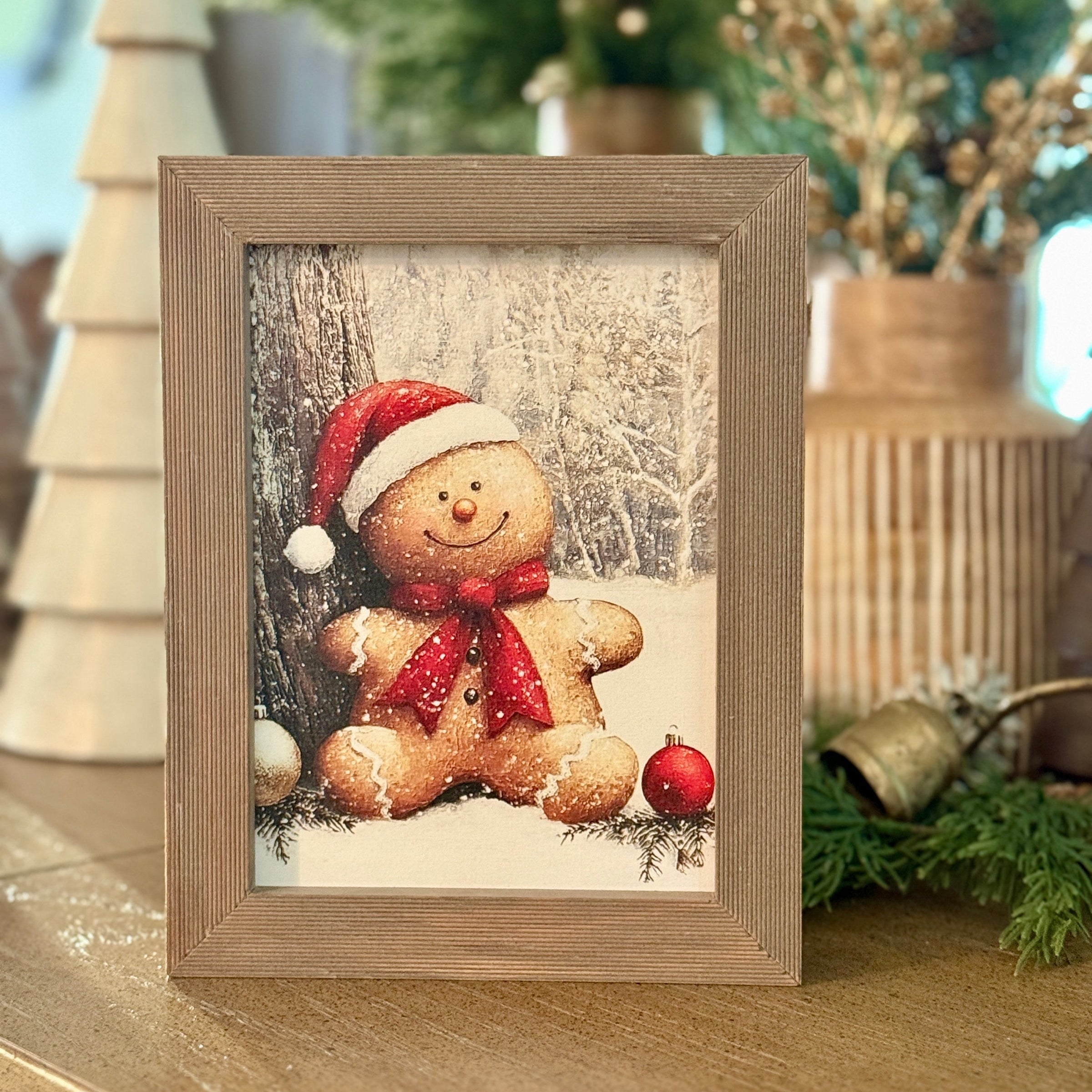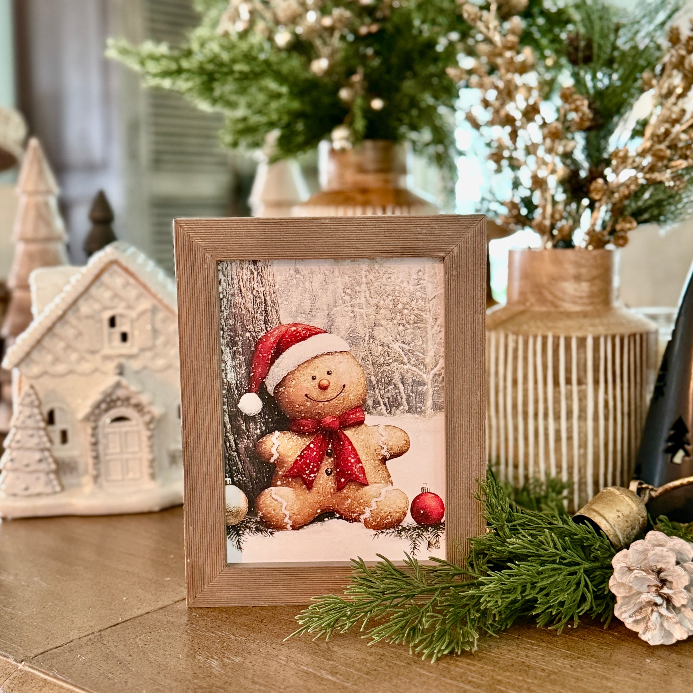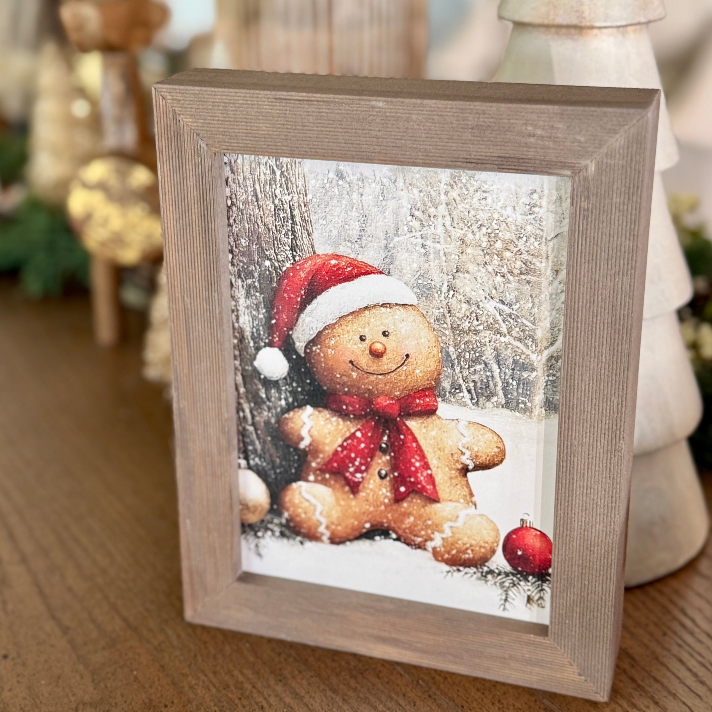 Barnwood Frame with Gingerbread Man Artwork Print Inside
