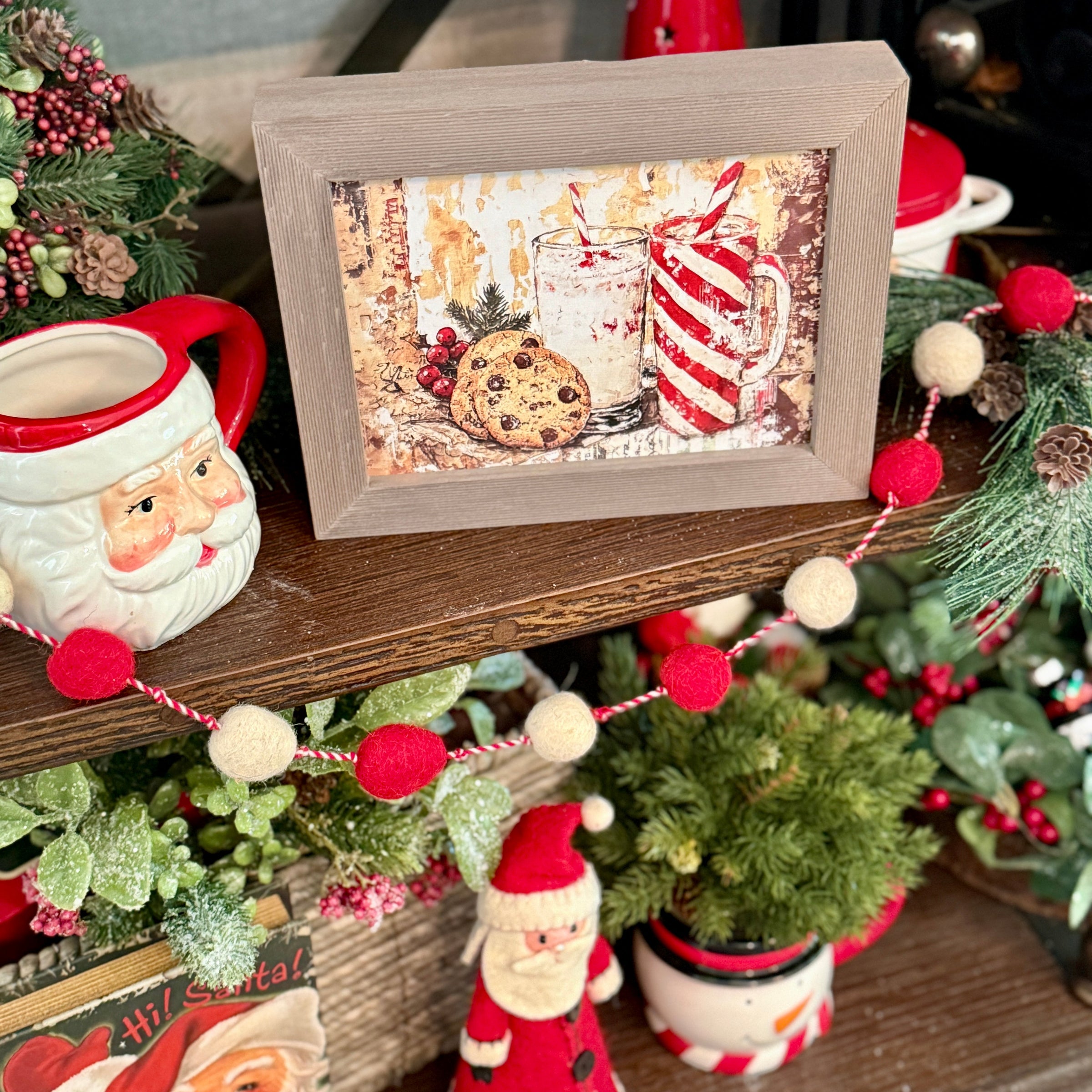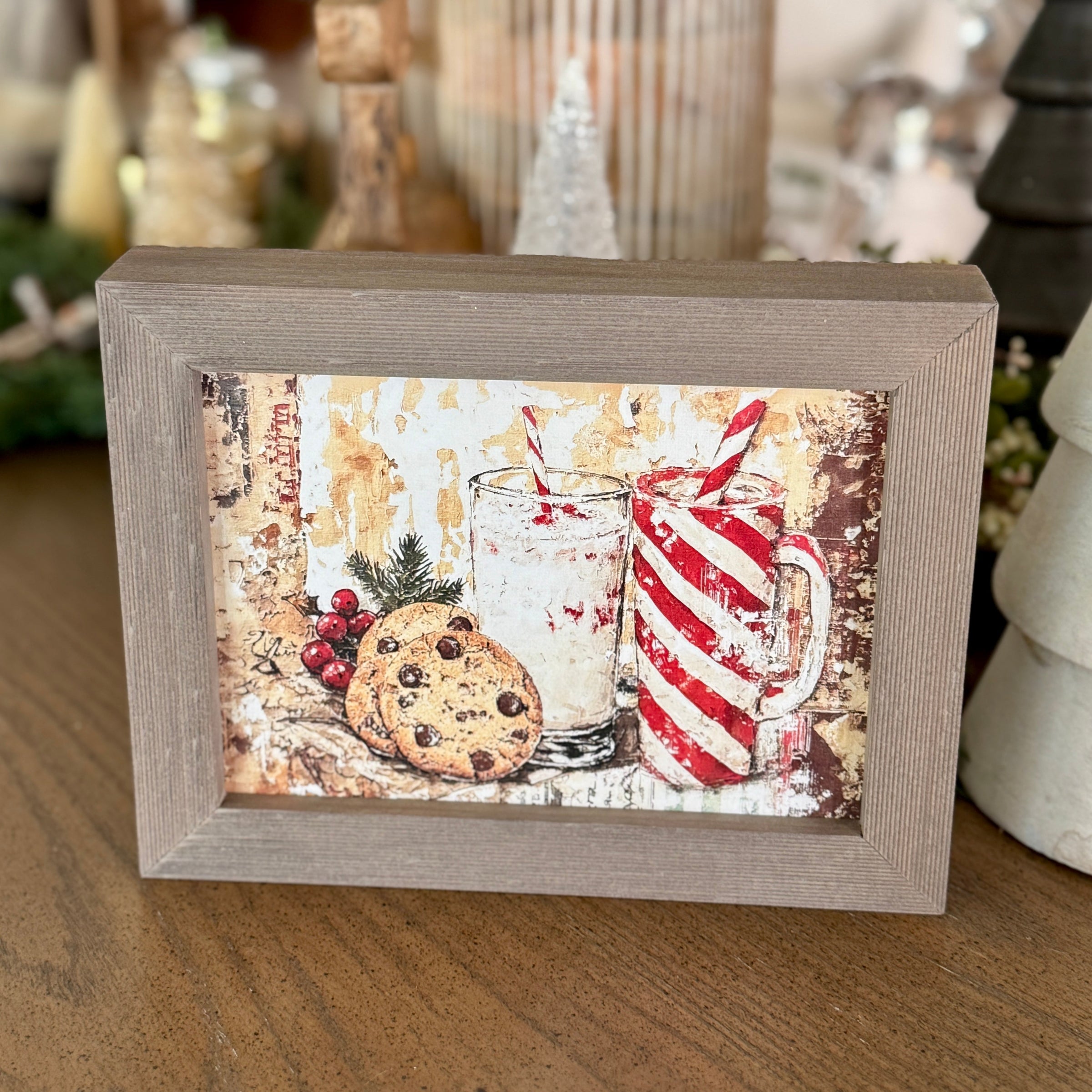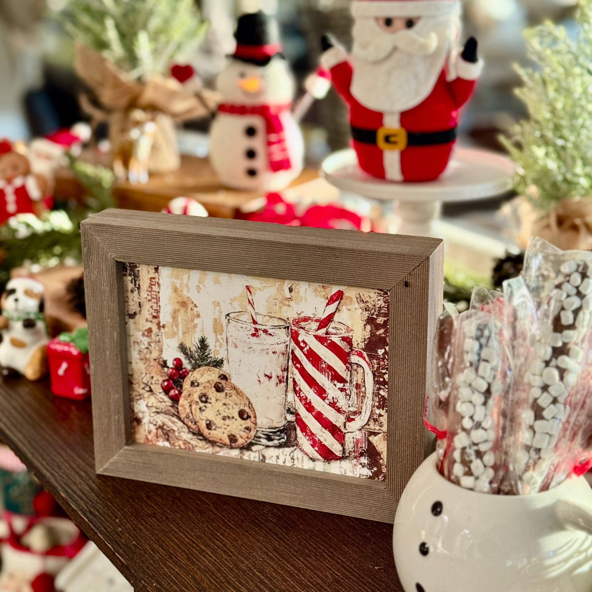 Barnwood Frame with Peppermint Shake, Glass of Milk, and Cookies Artwork Print Inside