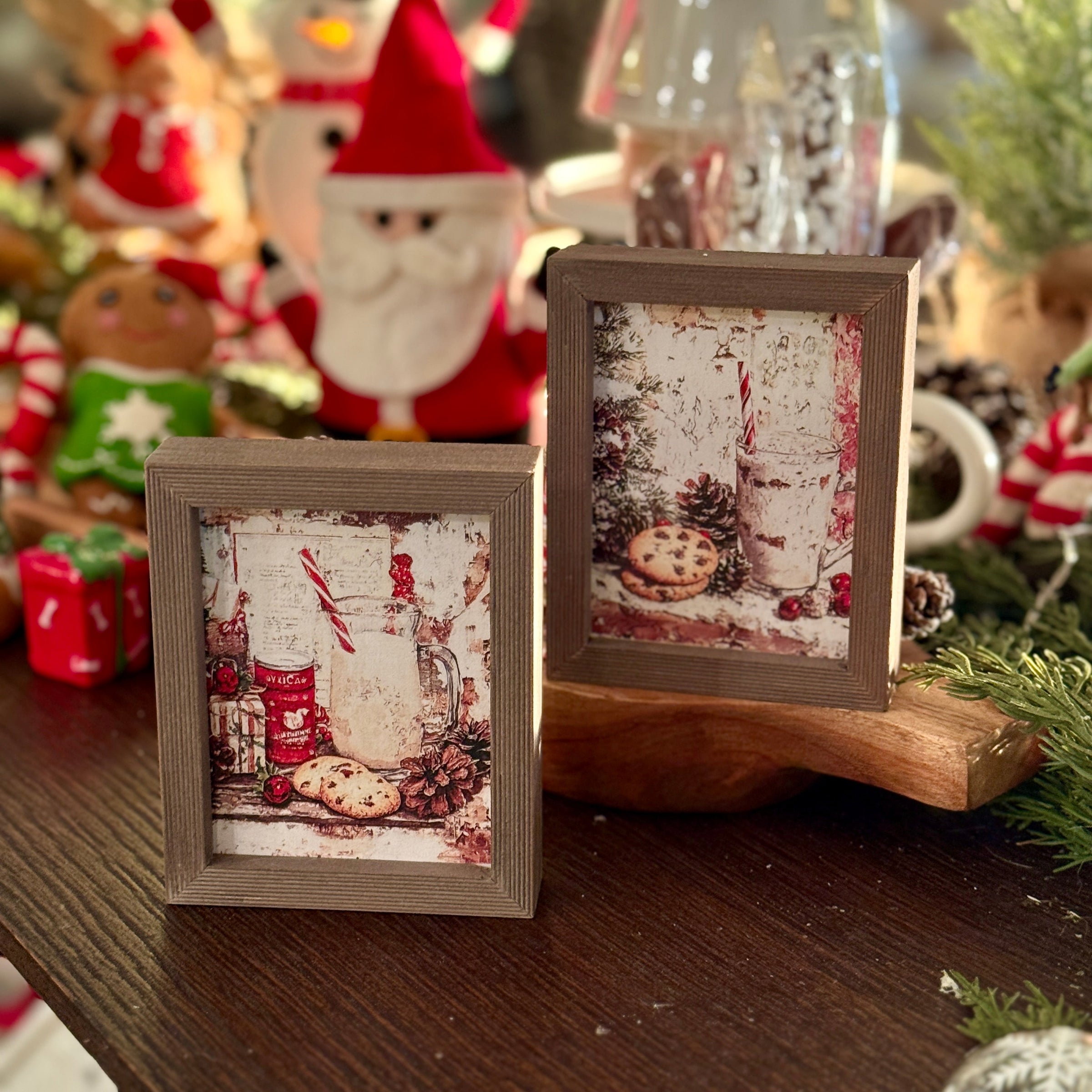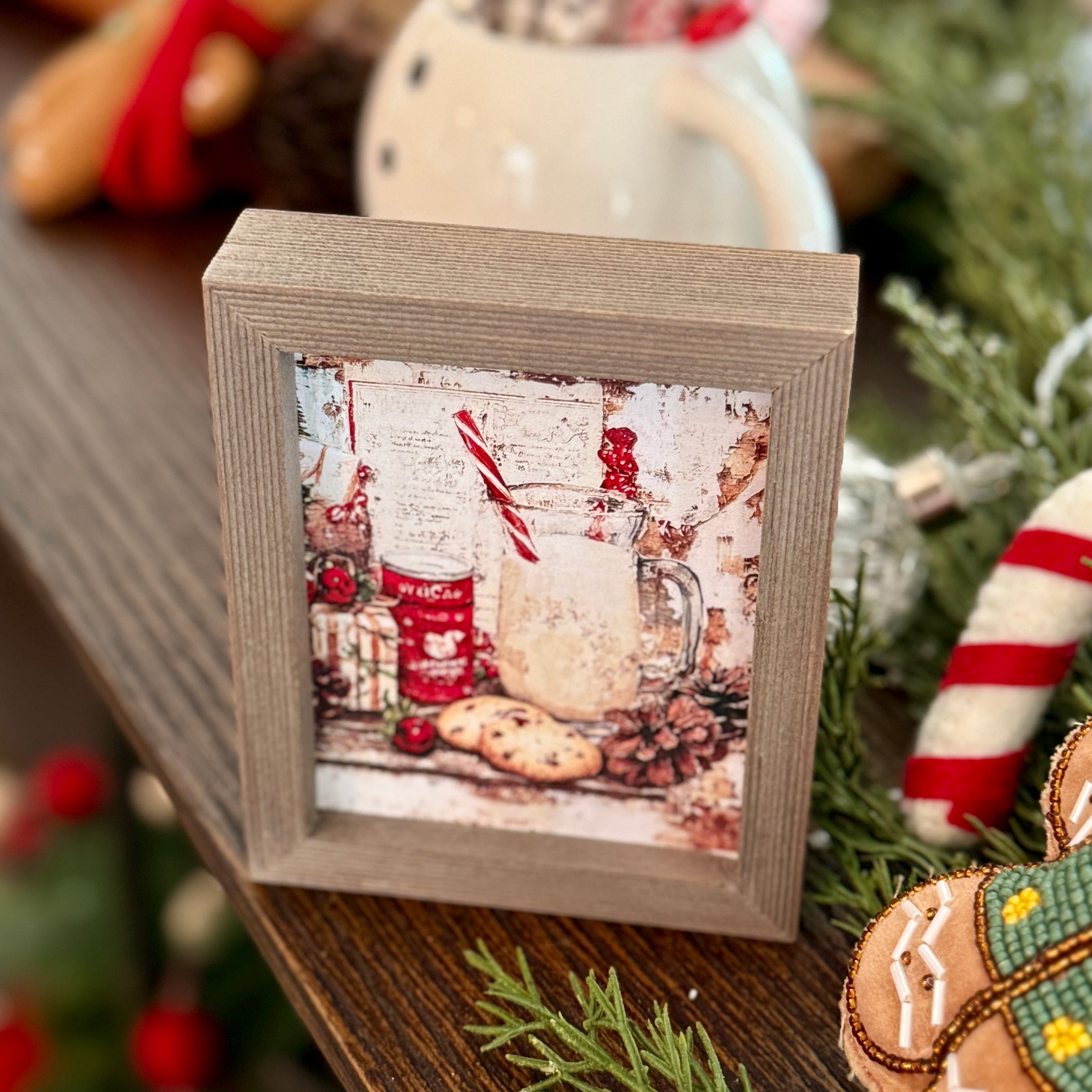 Barnwood Mini Frame with Milk and Cookies Artwork Print Inside