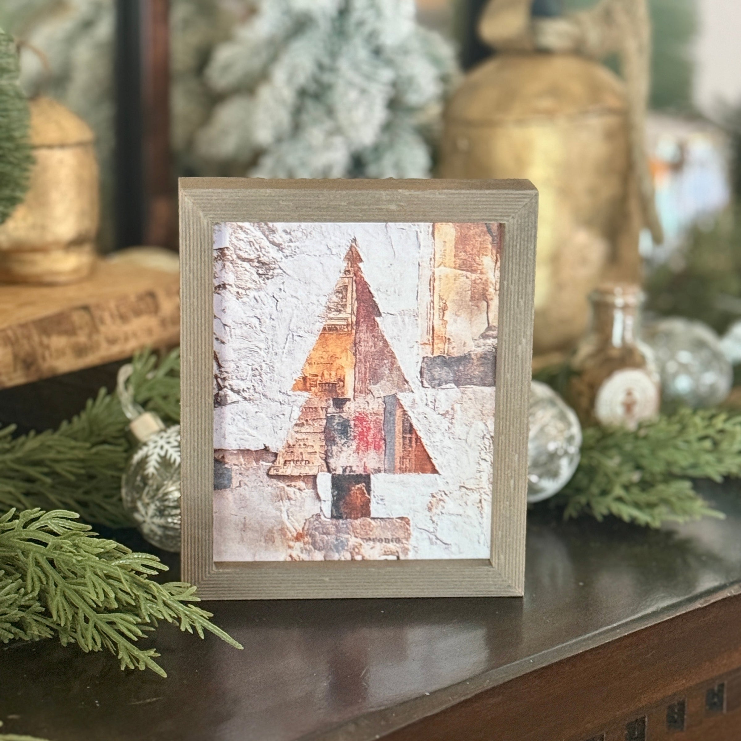 Barnwood Mini Frame with Christmas Tree Collage Artwork Print Inside