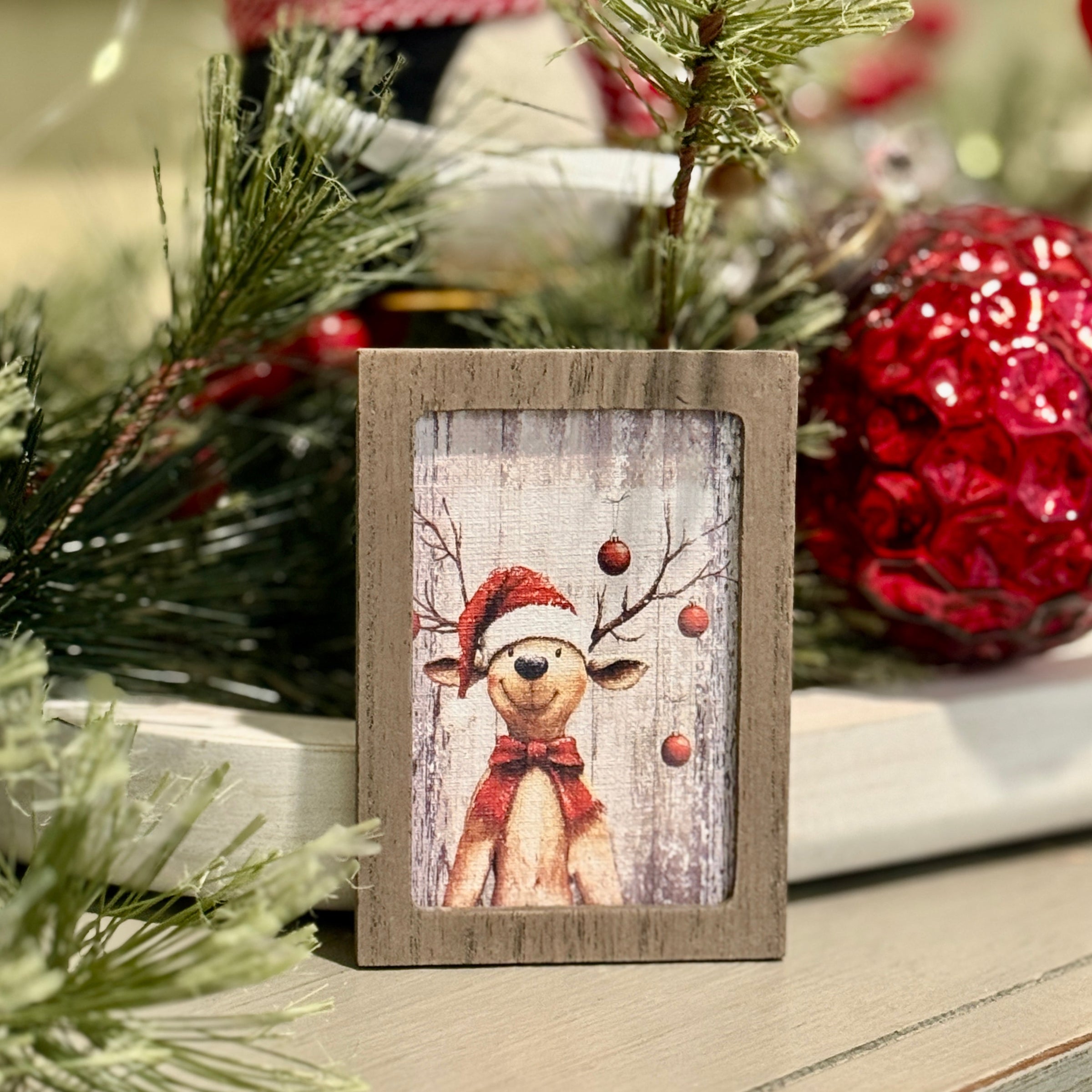 Washed Wood Framed Magnet with Reindeer Artwork Print Inside