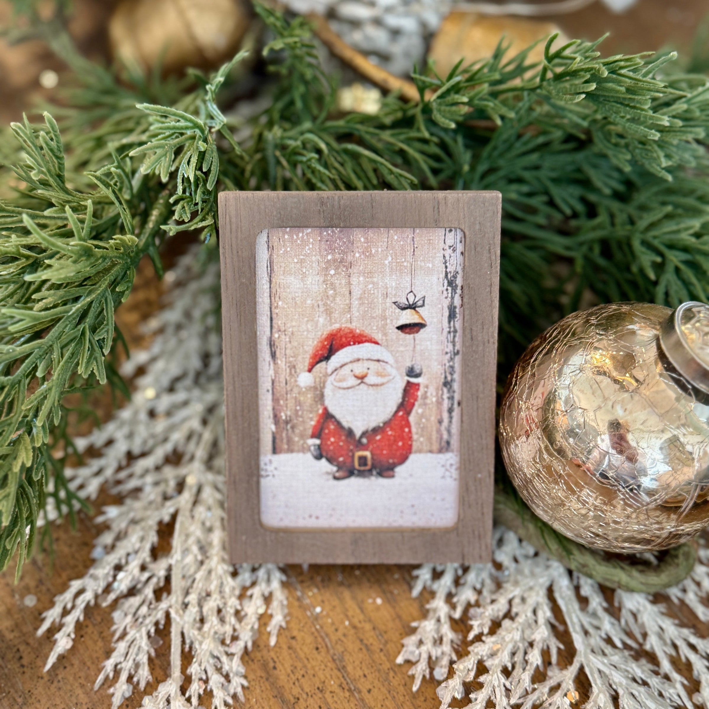 Washed Wood Framed Magnet with Santa Ringing Bell Artwork Print Inside