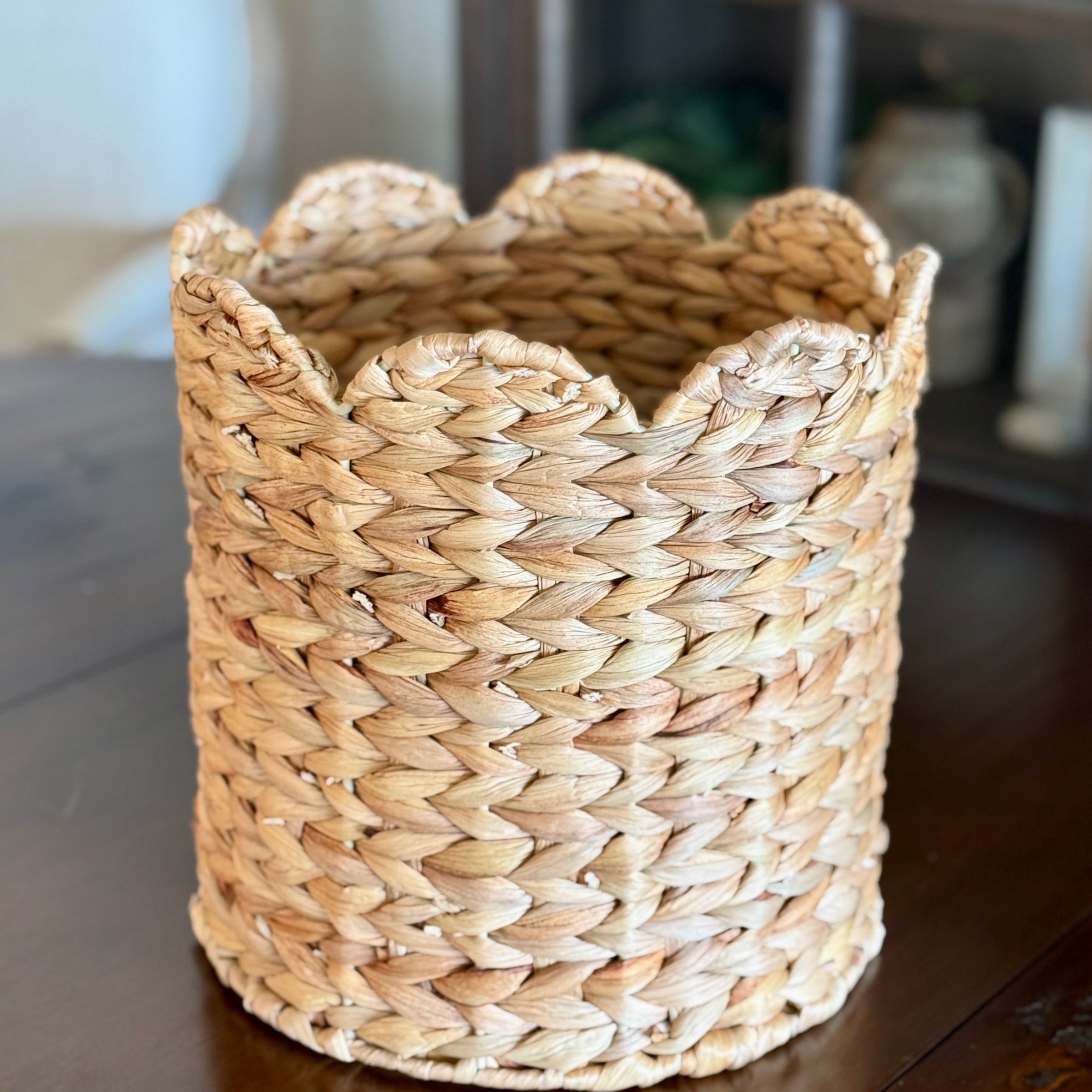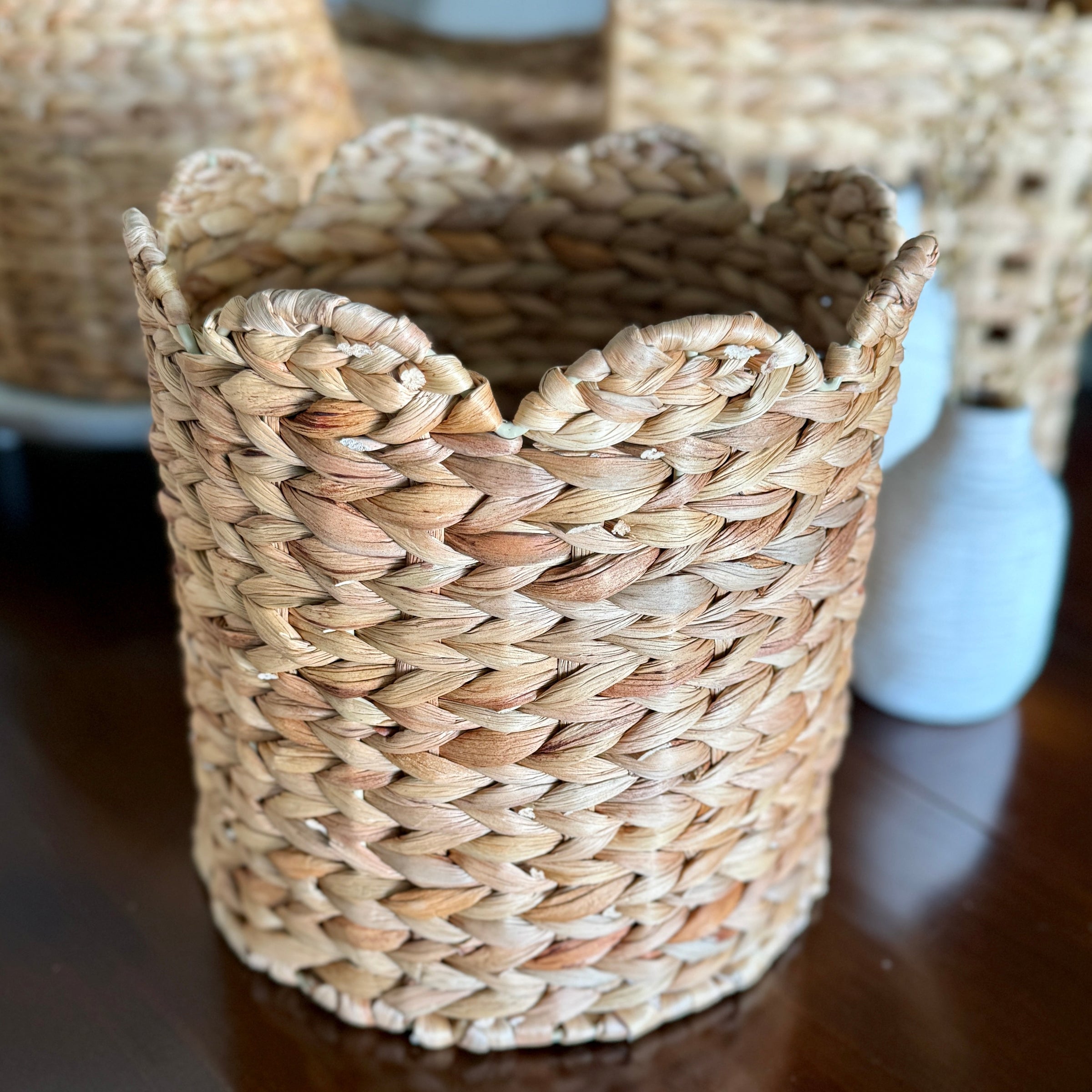 Water Hyacinth Scallop Edge Round Basket