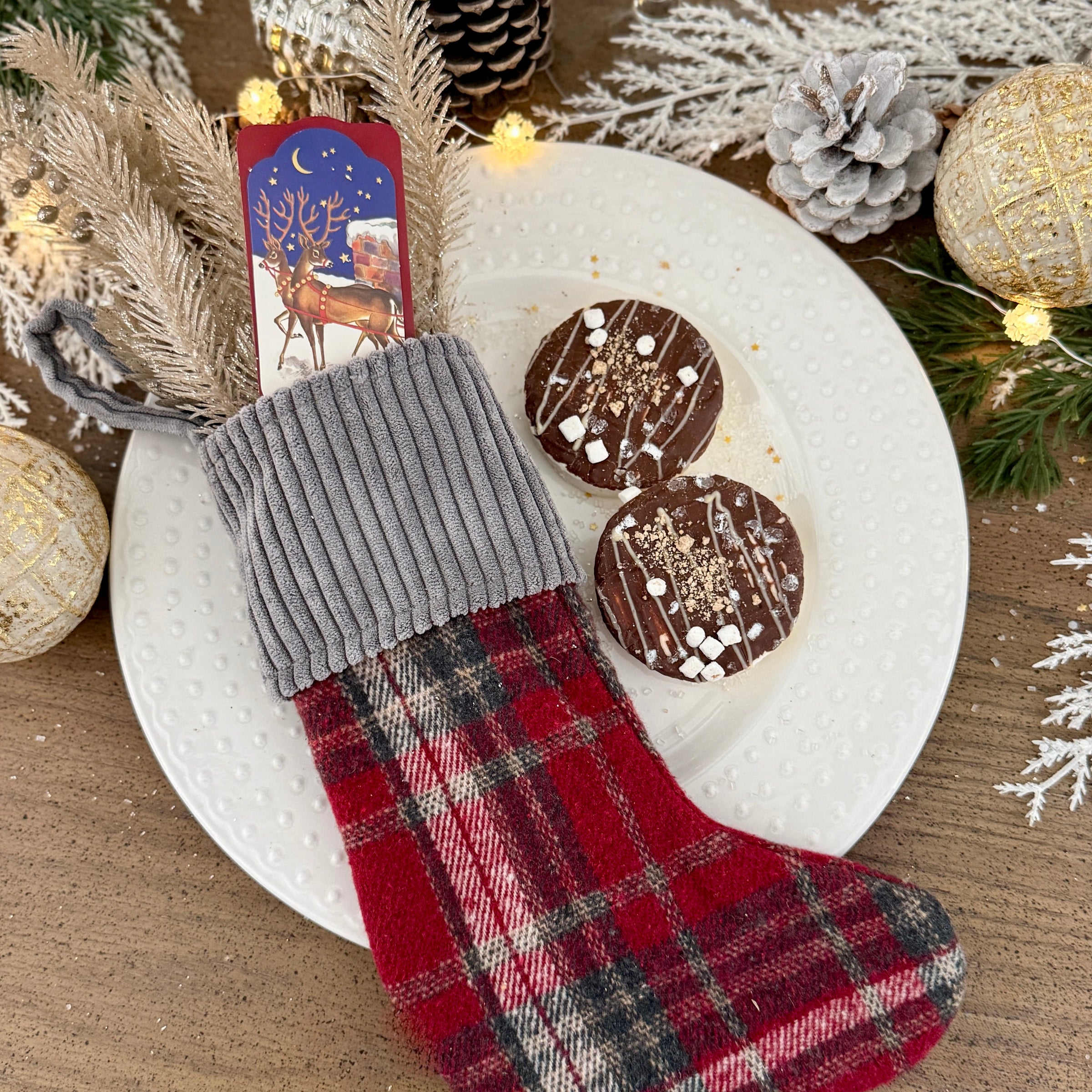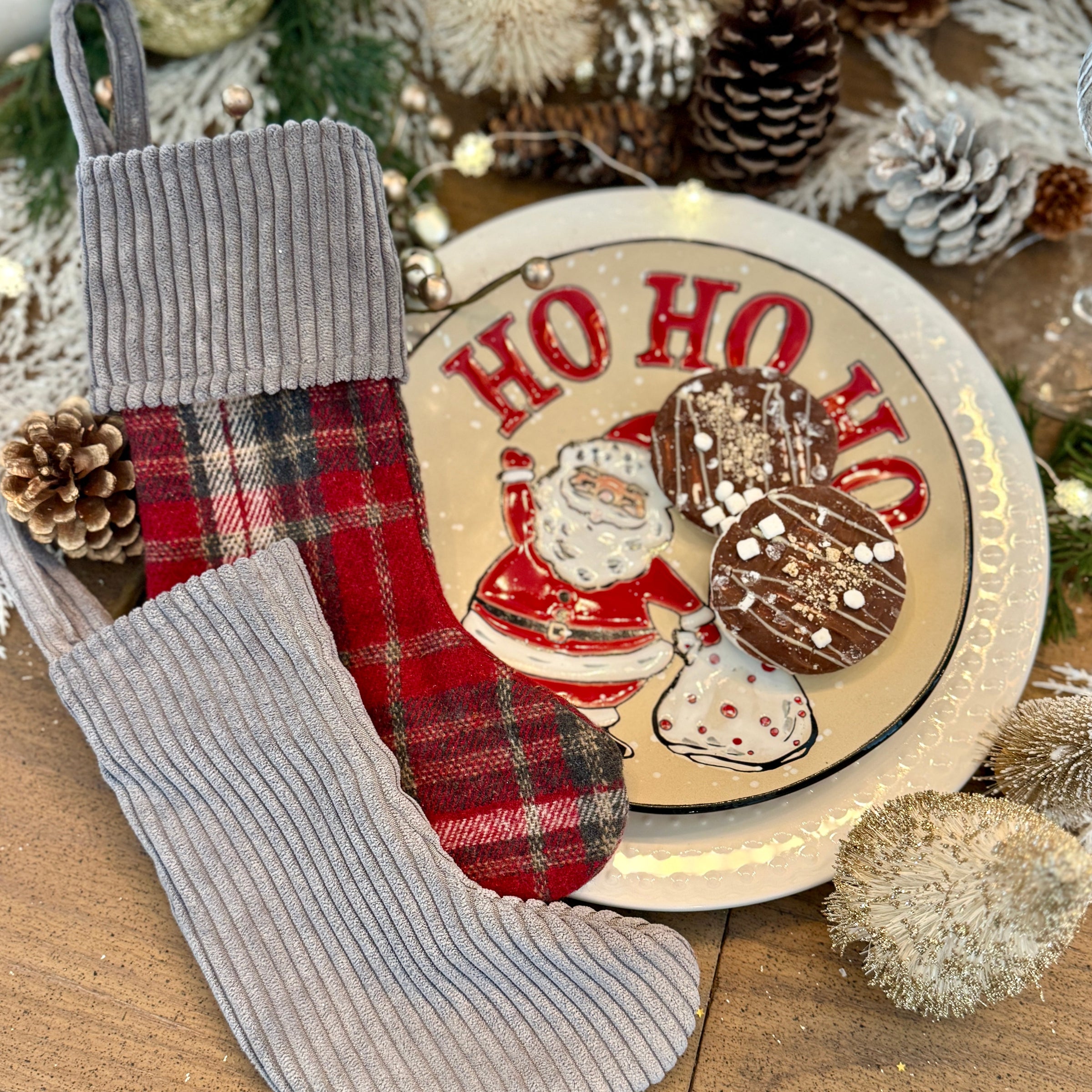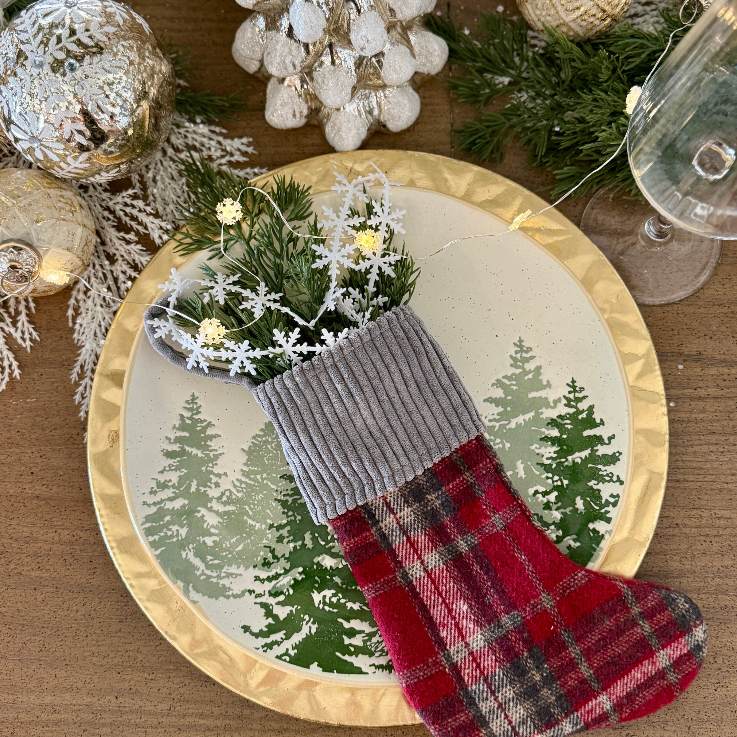 Mini Merry Plaid Stocking with Gray Wide Corduroy Cuff