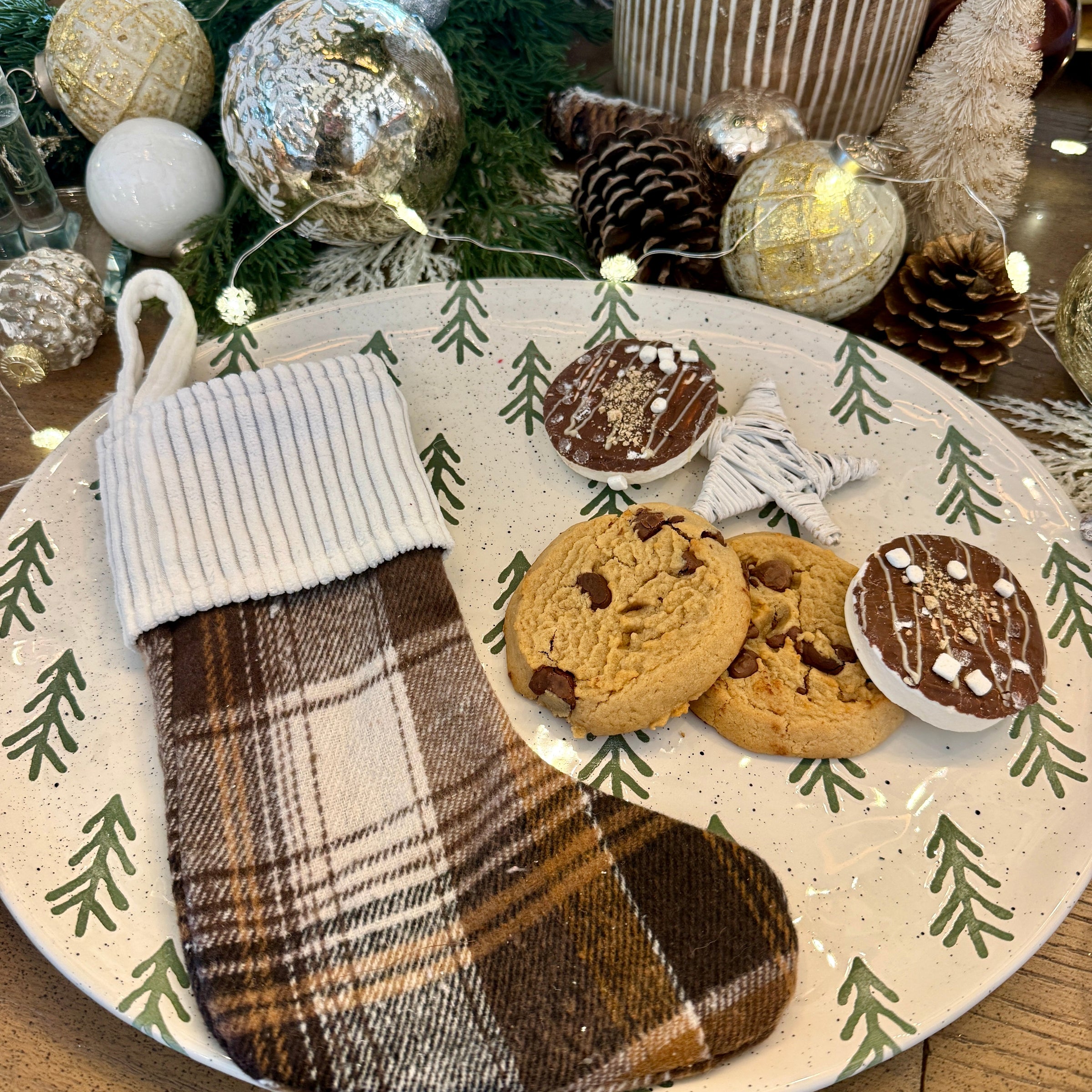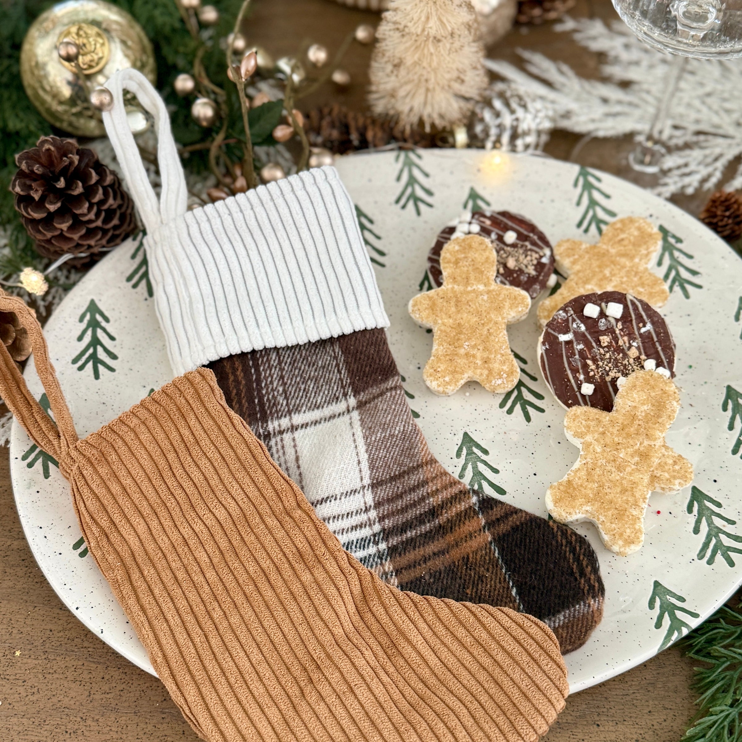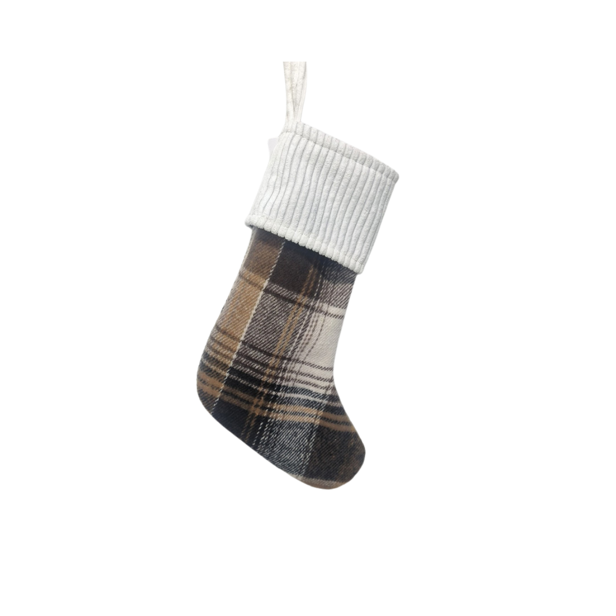 Mini Austin Plaid Stocking with White Wide Corduroy Cuff