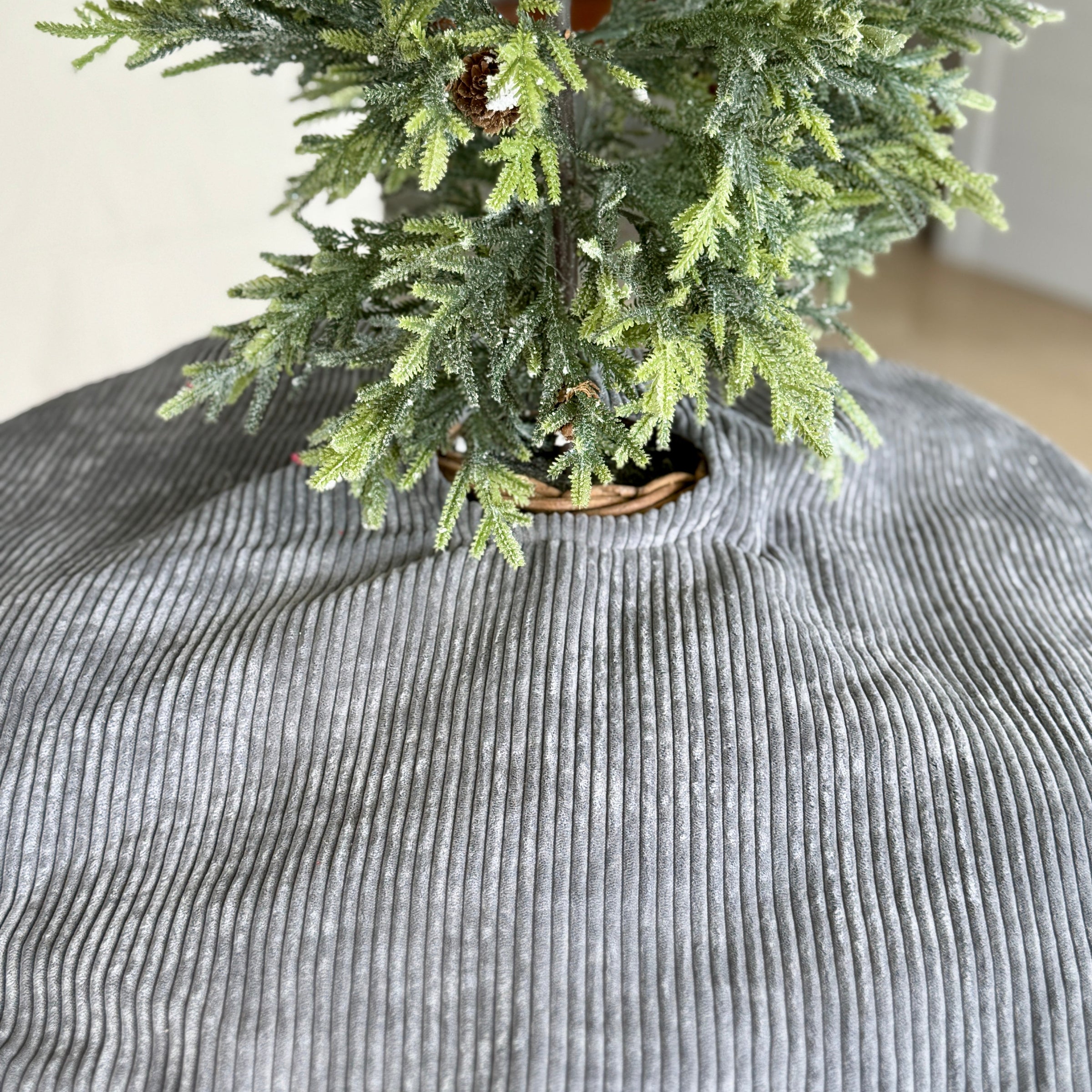 Gray Wide Corduroy Tree Skirt with Ties