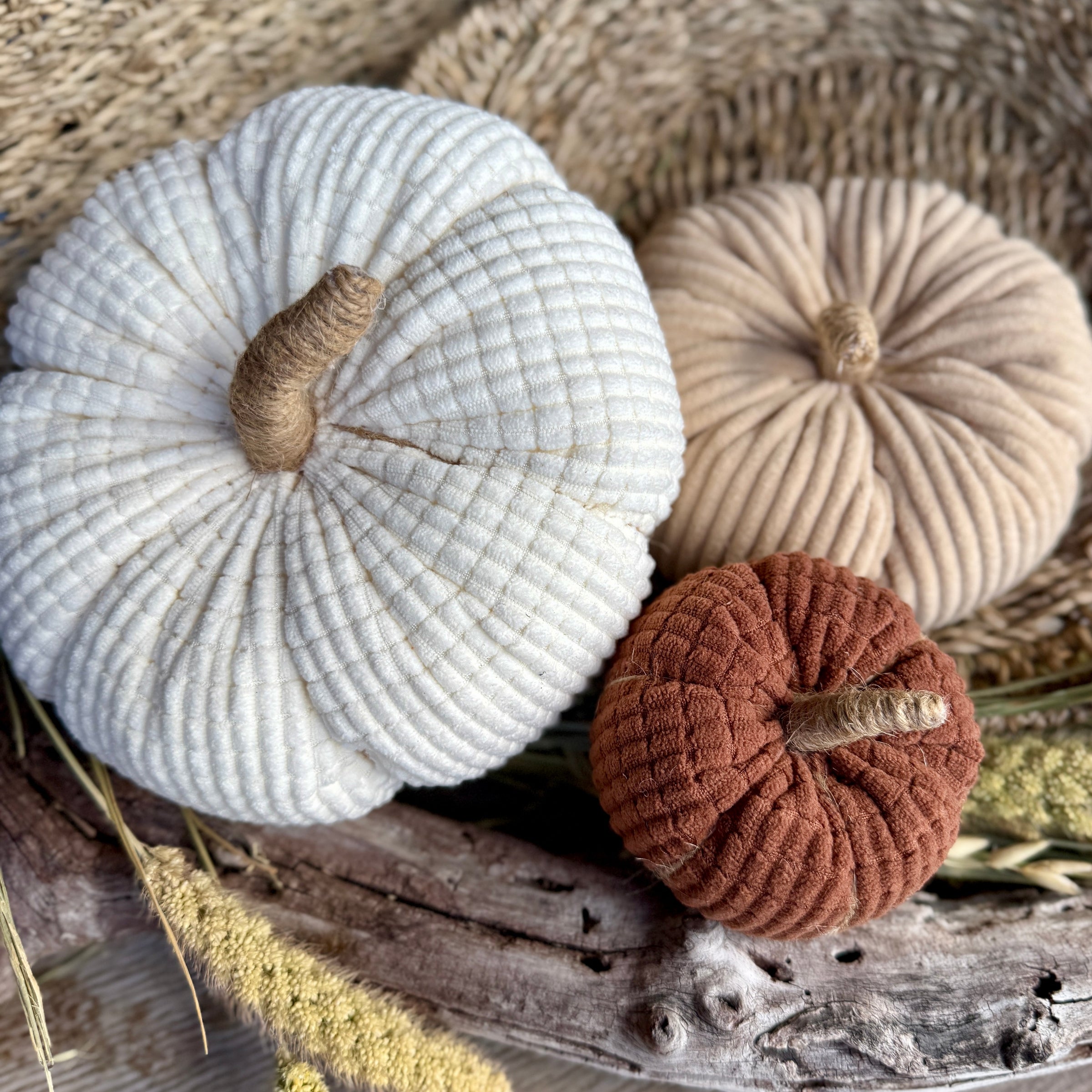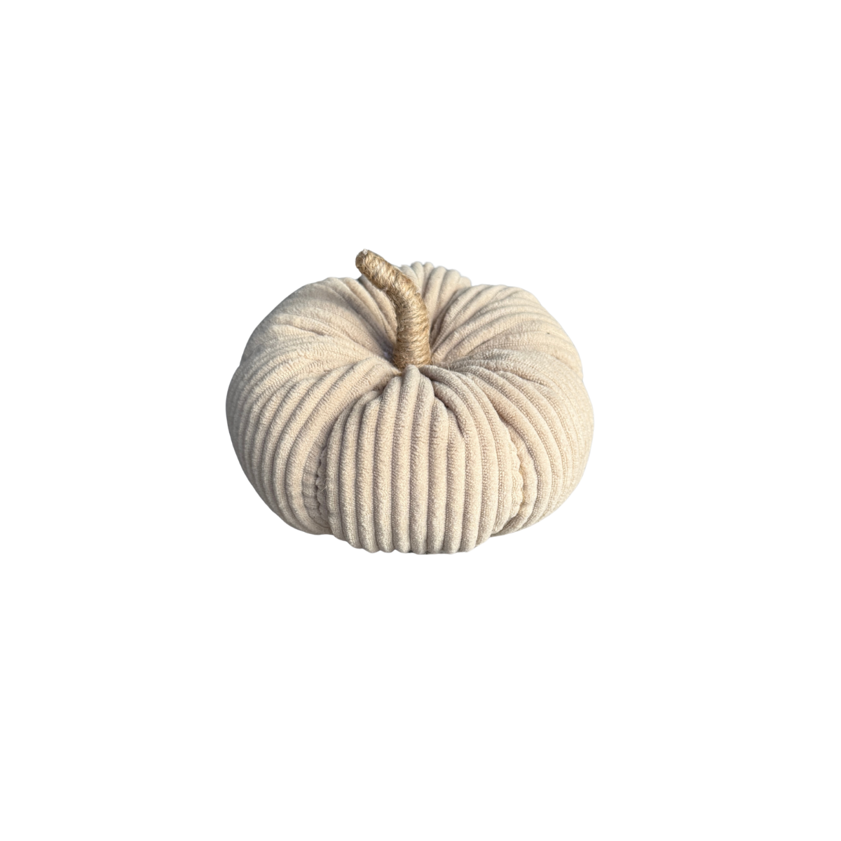 Medium Sand Wide Corduroy Pumpkin with Jute Wrapped Stem