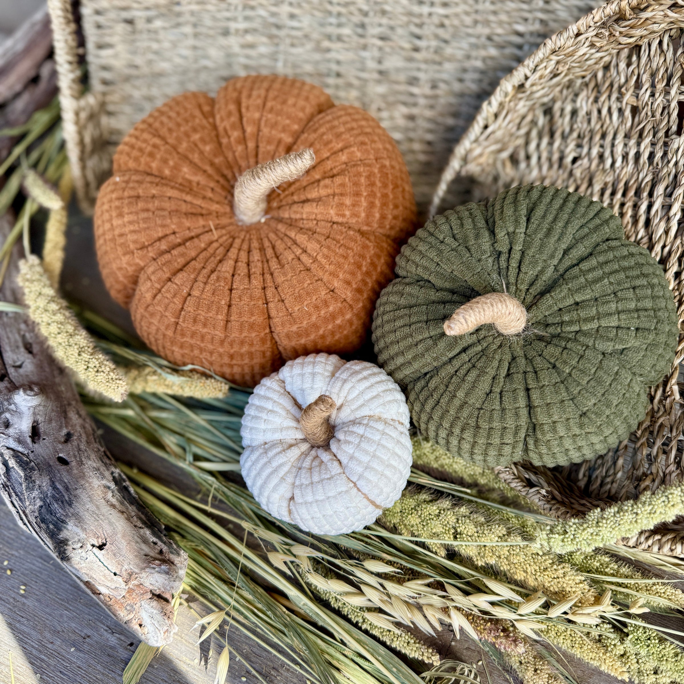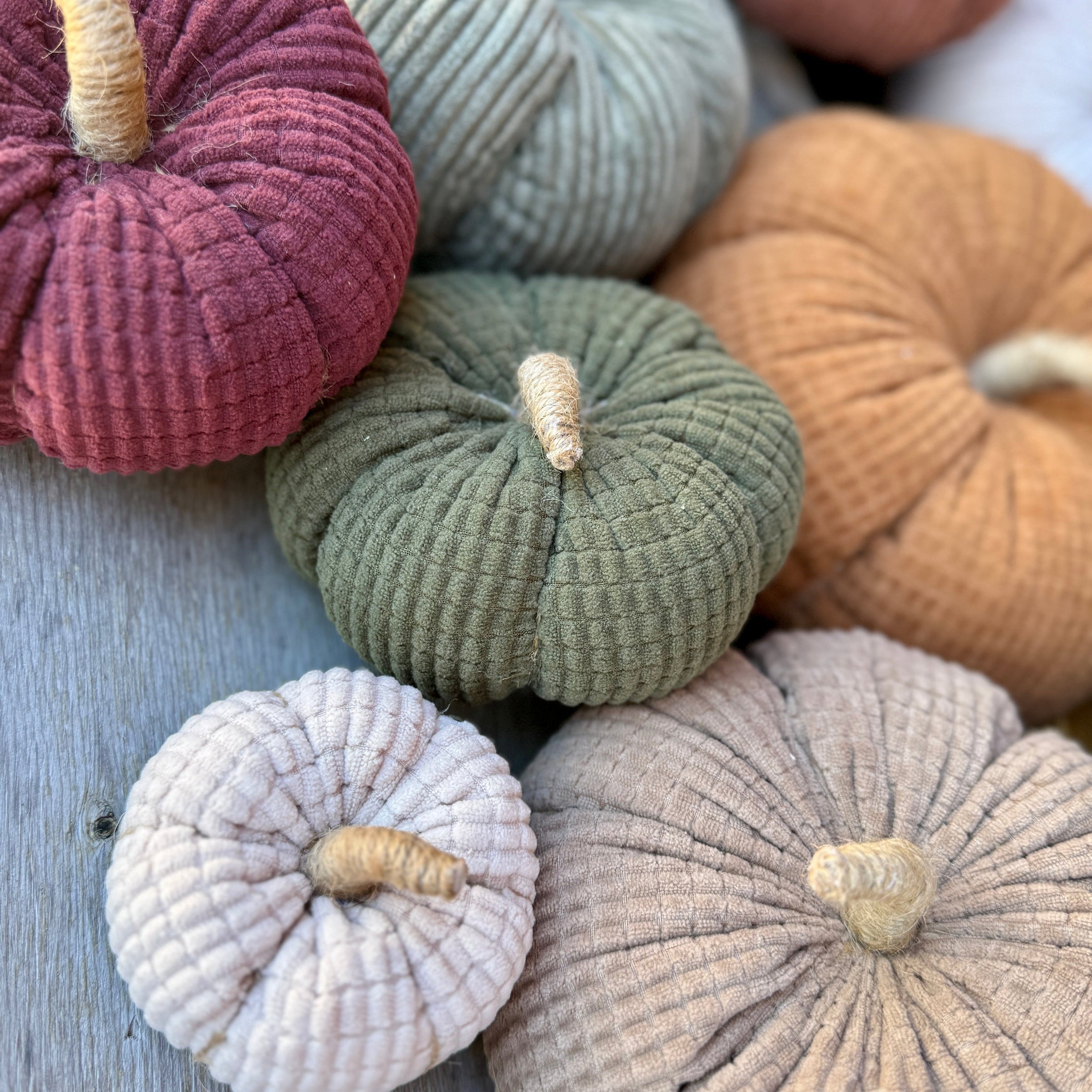 Medium Army Crosscut Corduroy Pumpkin with Jute Wrapped Stem