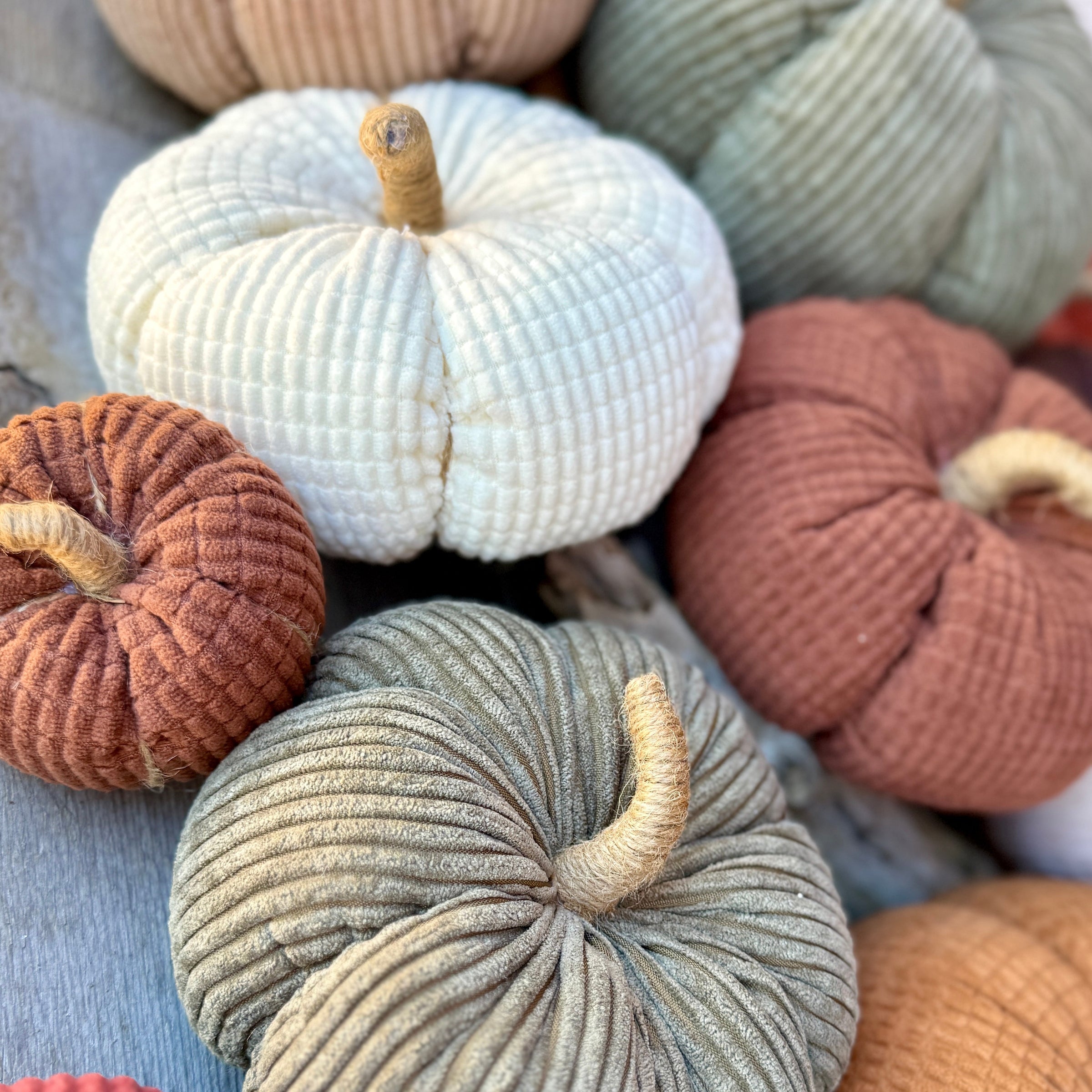 Chiffon Cross Corduroy Pumpkin with Jute Wrapped Stem