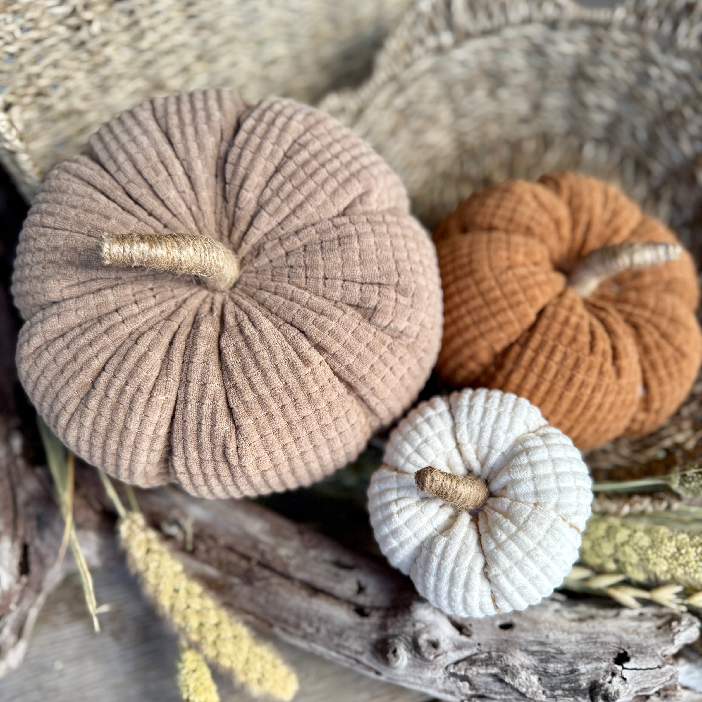 Brown Sugar Cross Corduroy Pumpkin with Jute Wrapped Stem