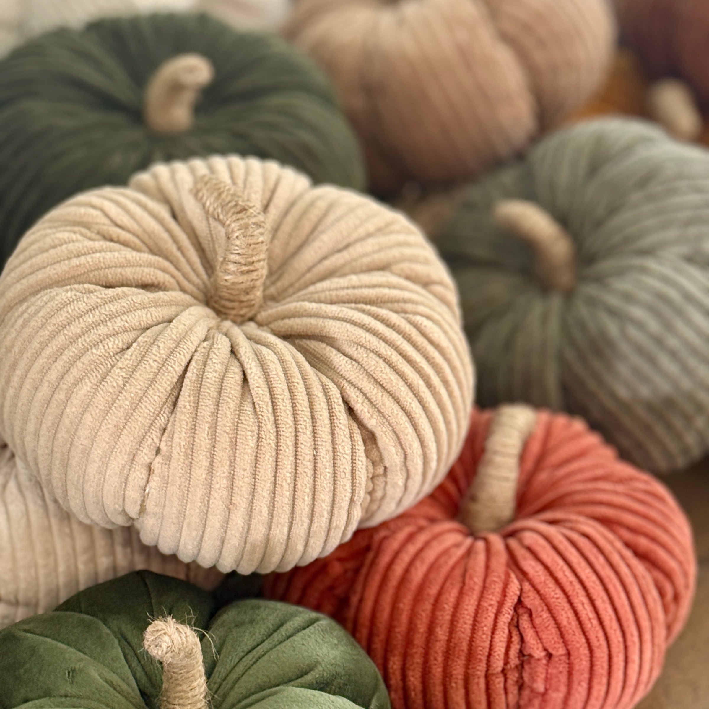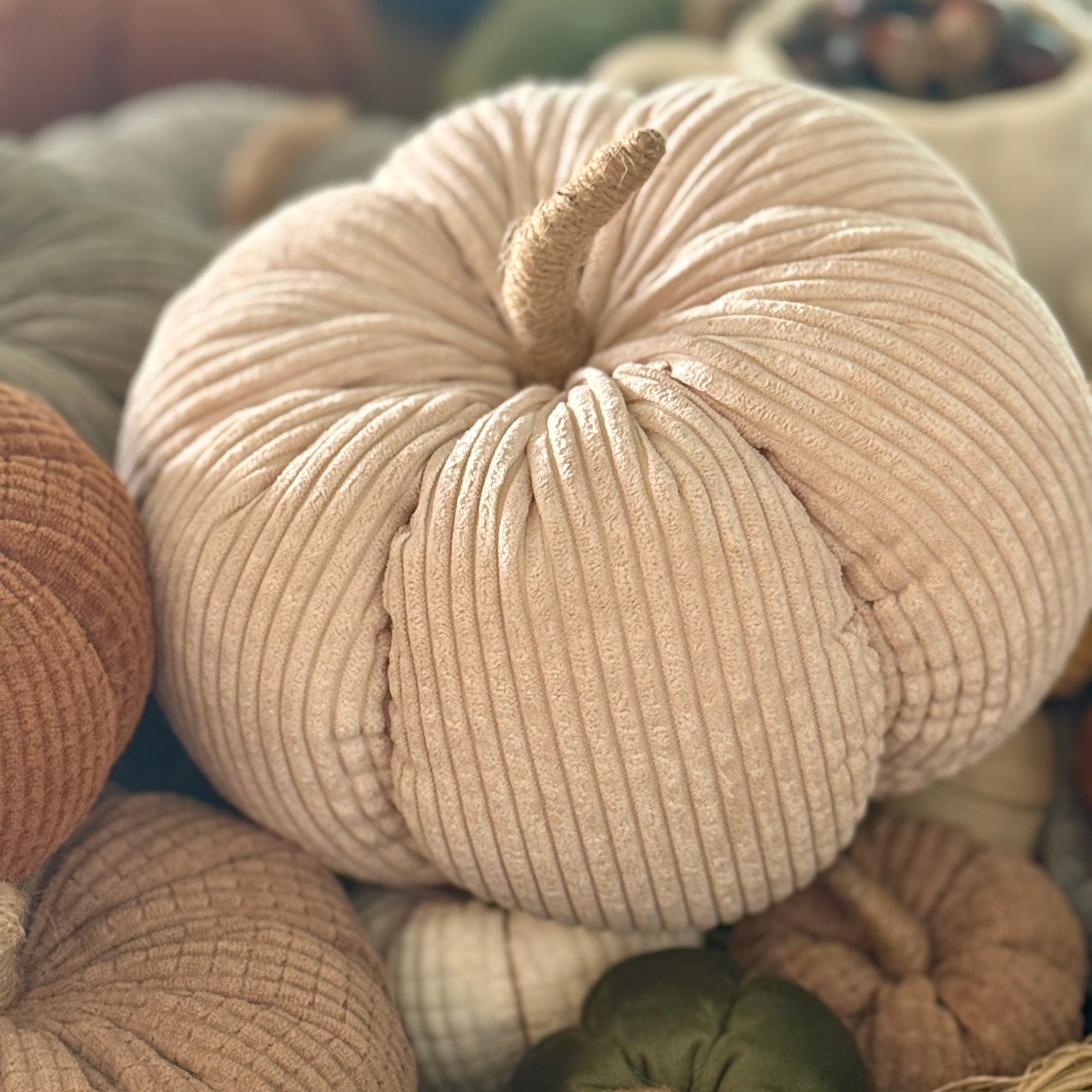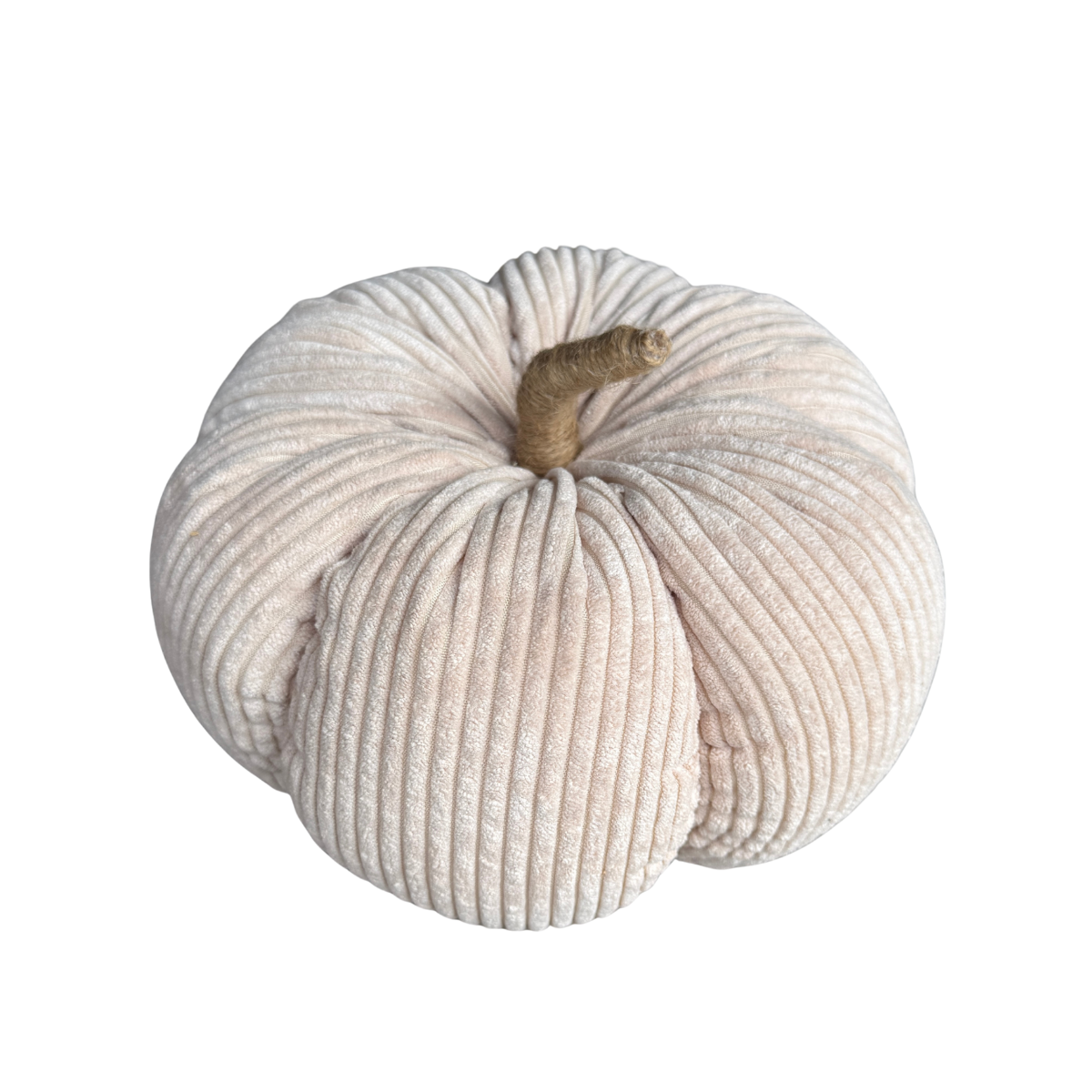 Tan Wide Corduroy Pumpkin with Jute Wrapped Stem