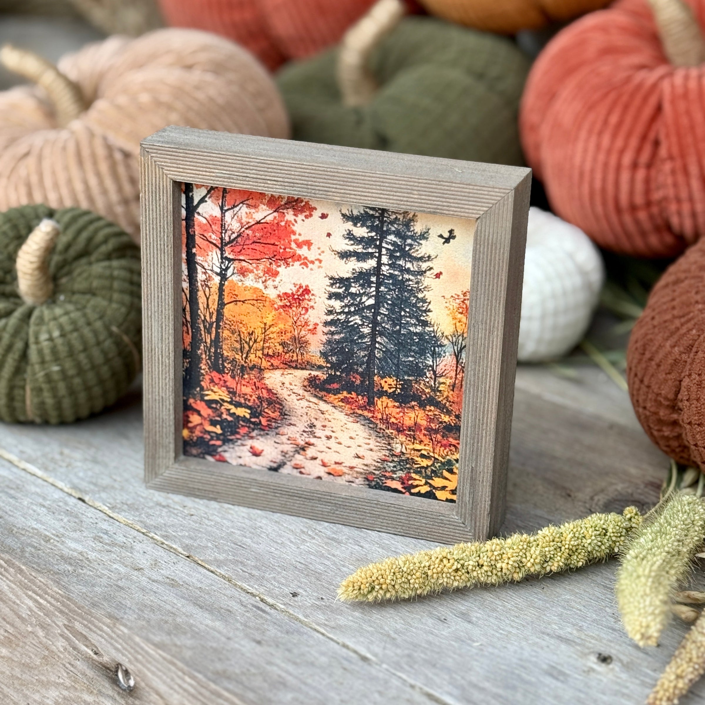 Barnwood Mini Frame with Autumn Backroad Artwork Print Inside
