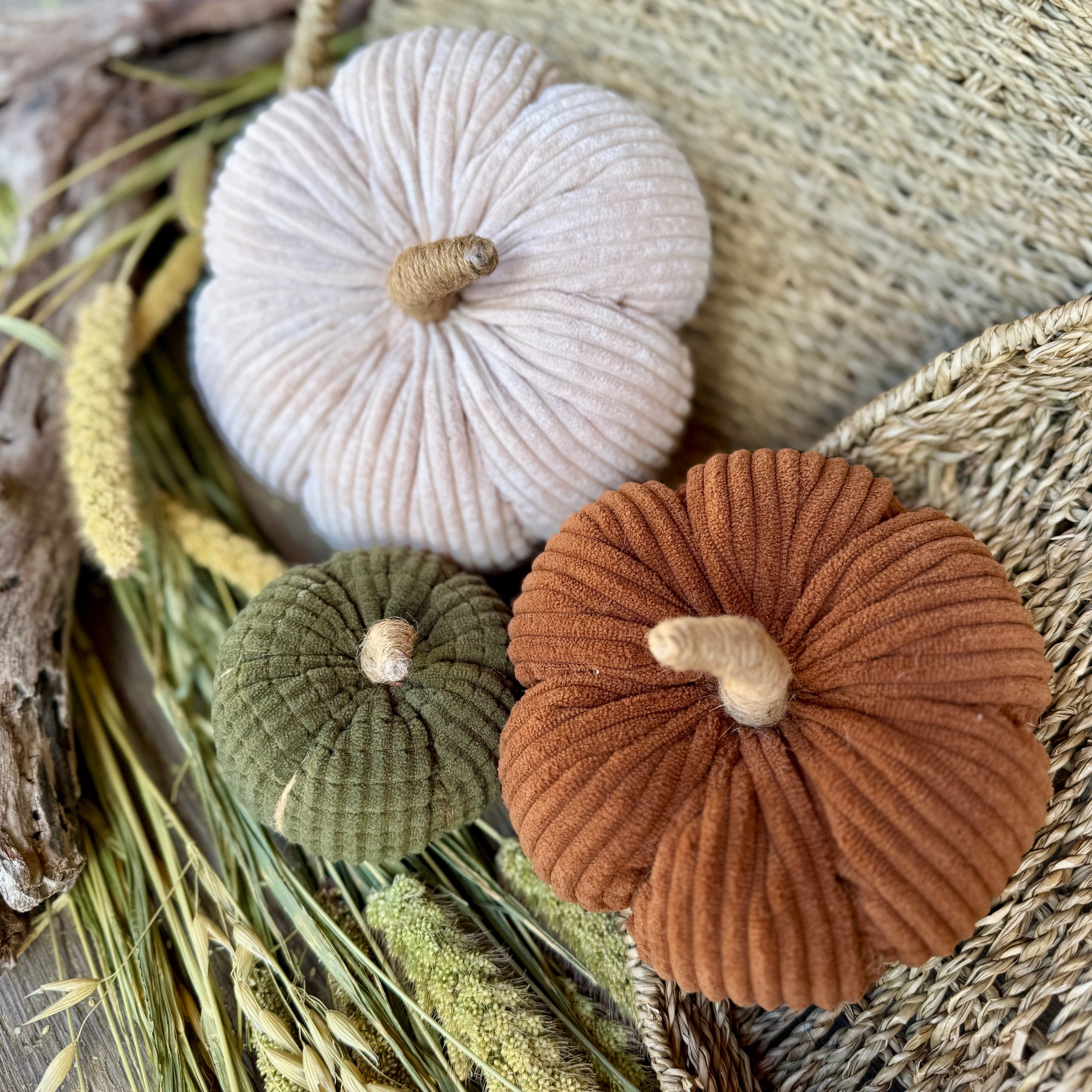 Medium Sable Wide Corduroy Pumpkin with Jute Wrapped Stem