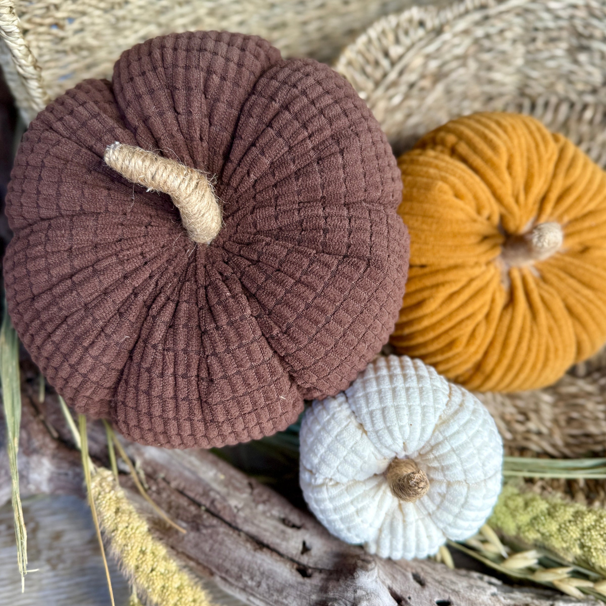 Cedar Cross Corduroy Pumpkin with Jute Wrapped Stem
