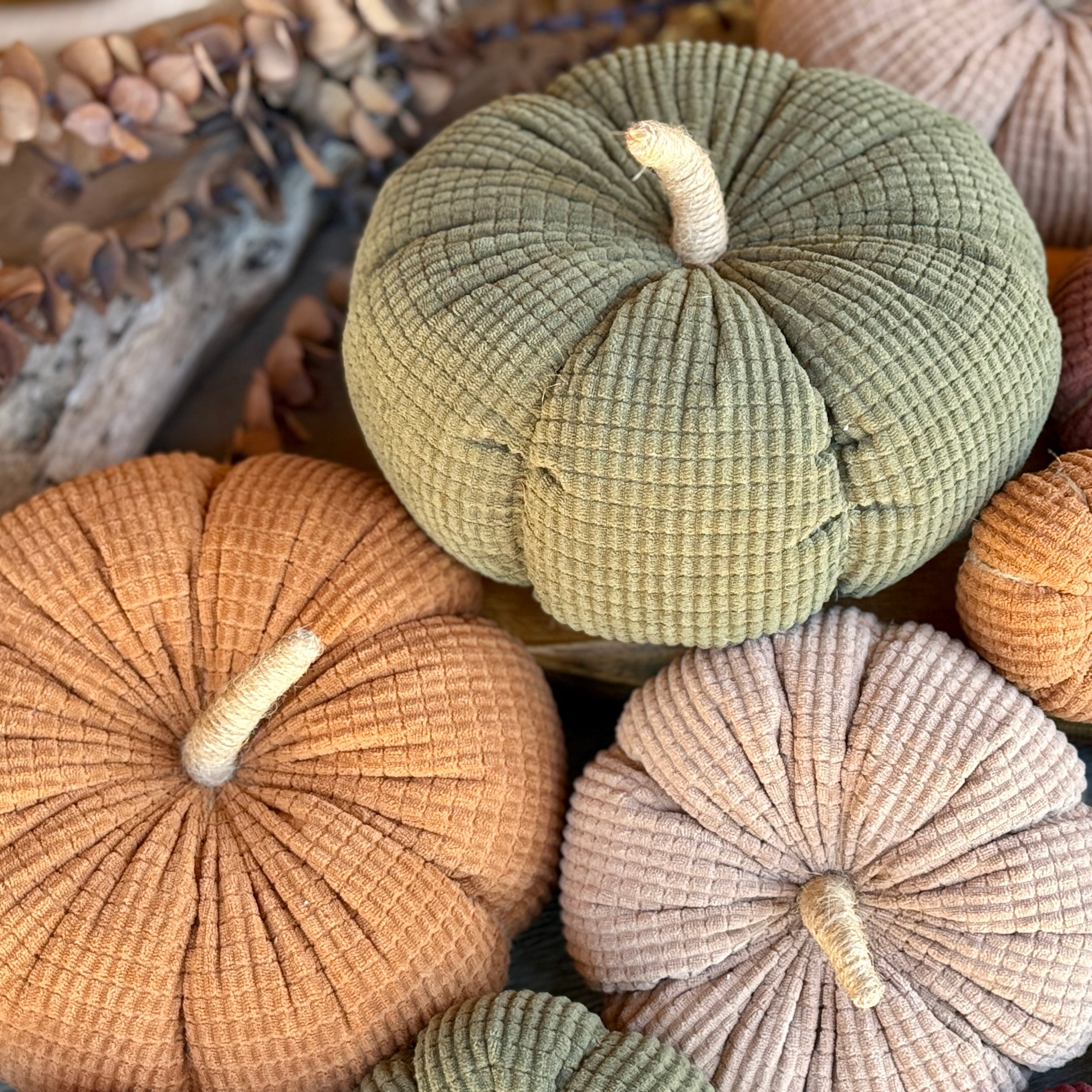 Copper Cross Corduroy Pumpkin with Jute Wrapped Stem