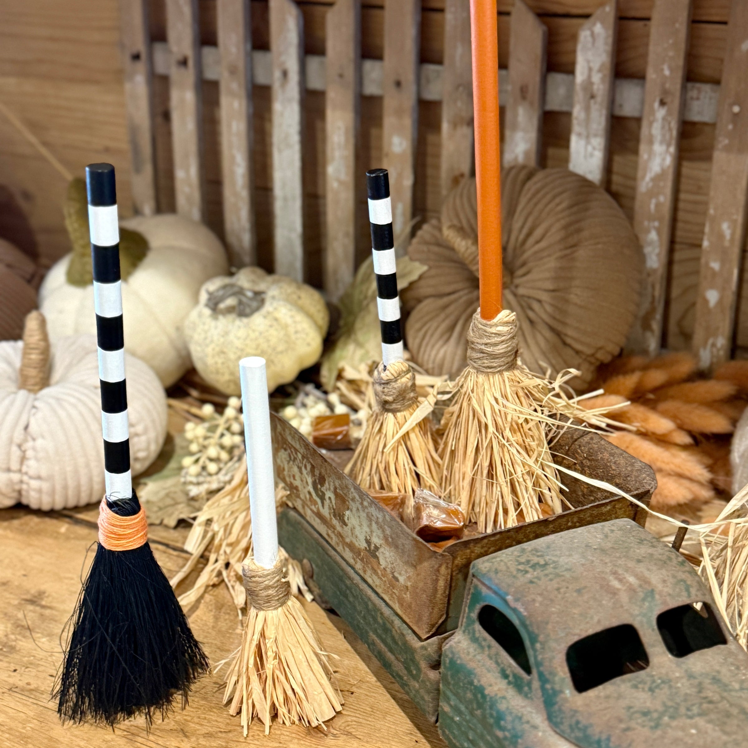 White Painted Wooden Broomstick with Jute Wrapped Around Natural Raffia Bristles